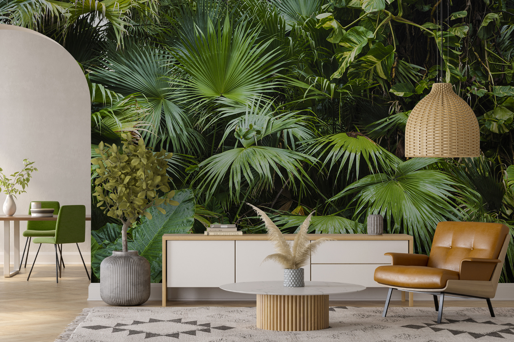 Transform any room into a serene escape with this stunning wall mural, “Lush Tropical Forest Greenery Scene.” Imagine stepping into a vibrant jungle right from your living space. The lush greens and abundant foliage transport you straight to a hidden paradise.
