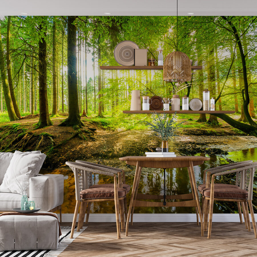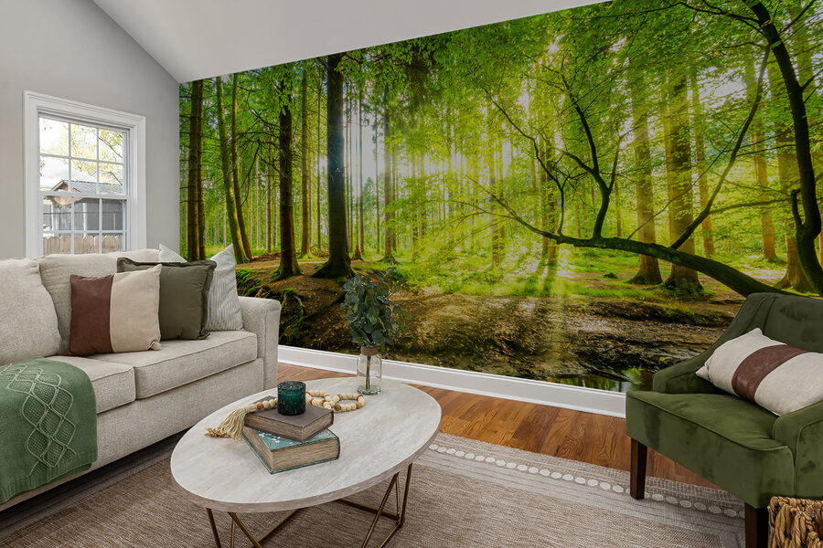 Transform any space with this enchanting wall mural featuring a captivating forest scene, where trees stretch high and sunlight spills through the leaves like nature’s confetti. Imagine settling into a comfy chair, a cup of tea in hand, as the peaceful vibes of this woodland wash over you. It’s like inviting the great outdoors inside without all the bugs. Children and adults alike might feel inspired to explore the magic of nature while staring at this mural. Whether it’s for a bedroom, living room, or creative nook, it’s bound to spark joy and a touch of adventure.