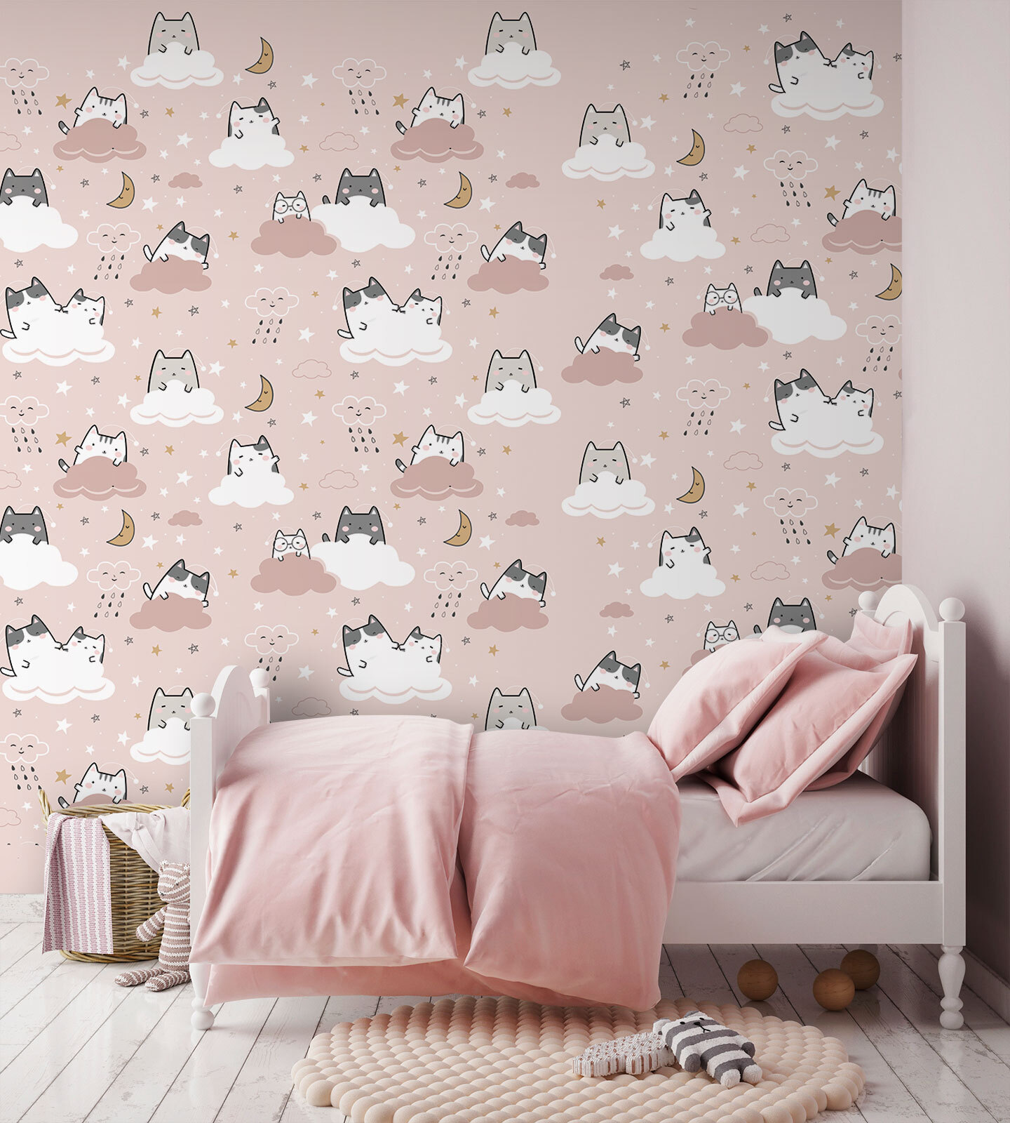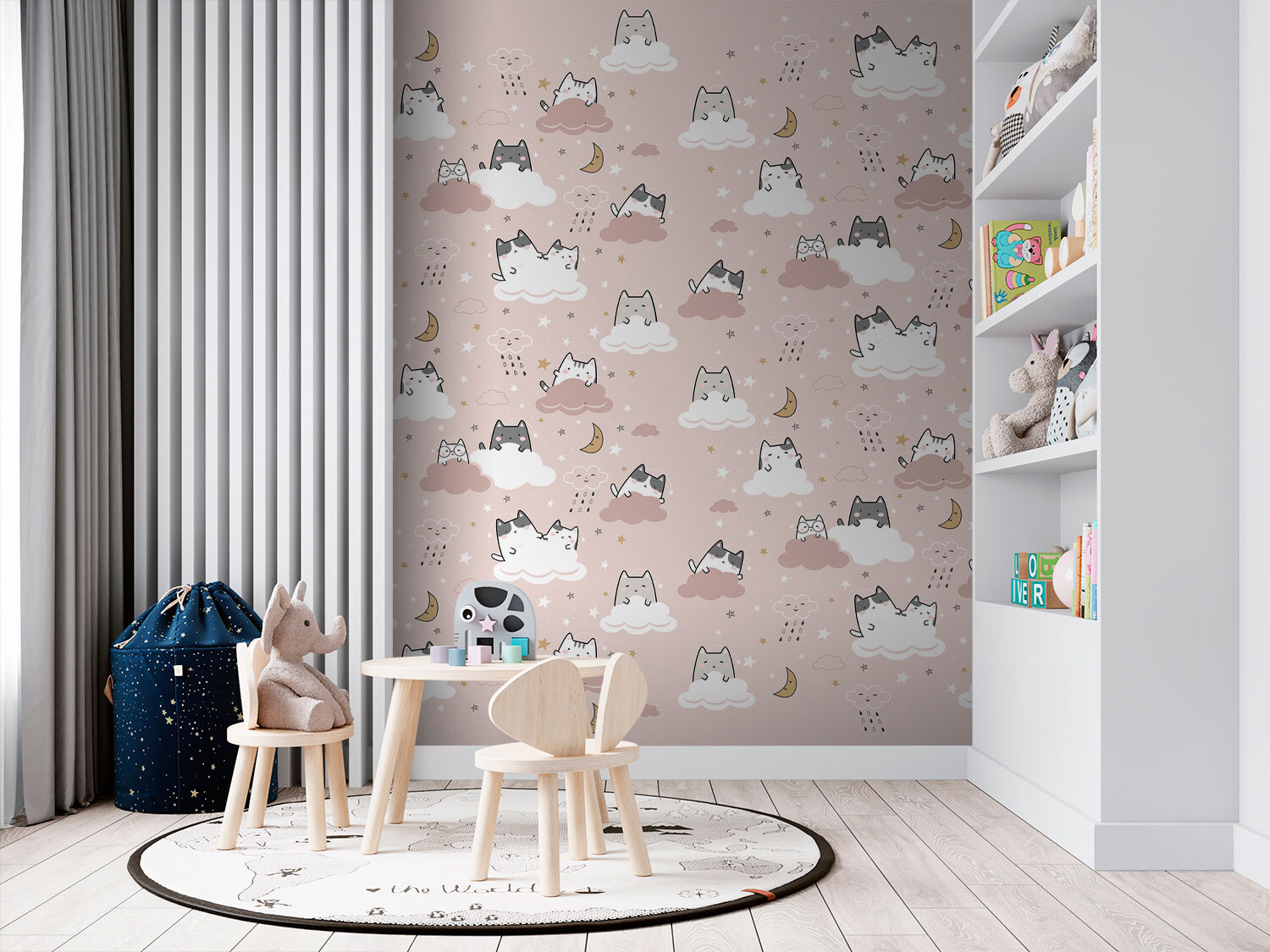 Transform your space into a whimsical wonderland with this delightful mural featuring cats lounging on fluffy clouds. It’s like a dreamy escape right on your wall, where every glance feels like a mini-vacation. Picture this: a cozy corner filled with soft lighting, and friends gathered, laughing while pointing out their favorite cat cloud. It’s playful yet soothing, perfect for a child’s room or a quirky living space. The soft colors and adorable patterns make it hard not to smile. Don’t be surprised if you find yourself getting lost in the clouds!