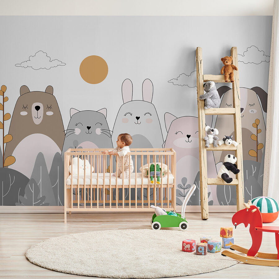 Brighten up your space with “Happy Animals Enjoying the Sun.” This enchanting wall mural features a cheerful bear, a playful cat, a little rabbit, and their furry friends basking in the warm glow of the sun. It’s like having a mini wildlife party in your room! Imagine stepping in and feeling those instant good vibes—who wouldn’t smile back at those adorable faces? Perfect for nurseries, playrooms, or even your cozy reading nook, this mural adds a sprinkle of joy and whimsy to everyday life. Make each moment a little more magical with these furry pals cheering you on!