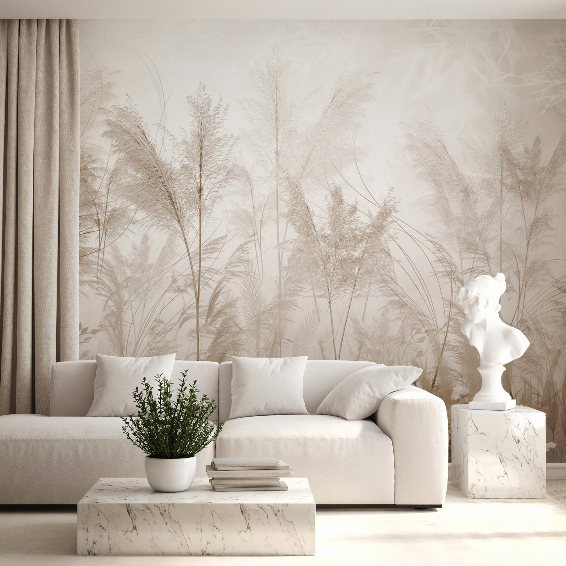 Transform your space into a serene escape with this enchanting mural of tall grasses swaying softly in the morning light. It’s like waking up in a tranquil meadow without leaving home. Picture sipping your coffee, surrounded by a whispering breeze and the gentle warmth of sunbeams. The soft hues and dreamy design create a soothing vibe, making it perfect for a cozy living space or a peaceful bedroom retreat. With every glance, you’ll feel a little more connected to nature, as if the outdoors just strolled into your life. Who knew wall art could spark daydreams? It’s time to let your walls tell a story.