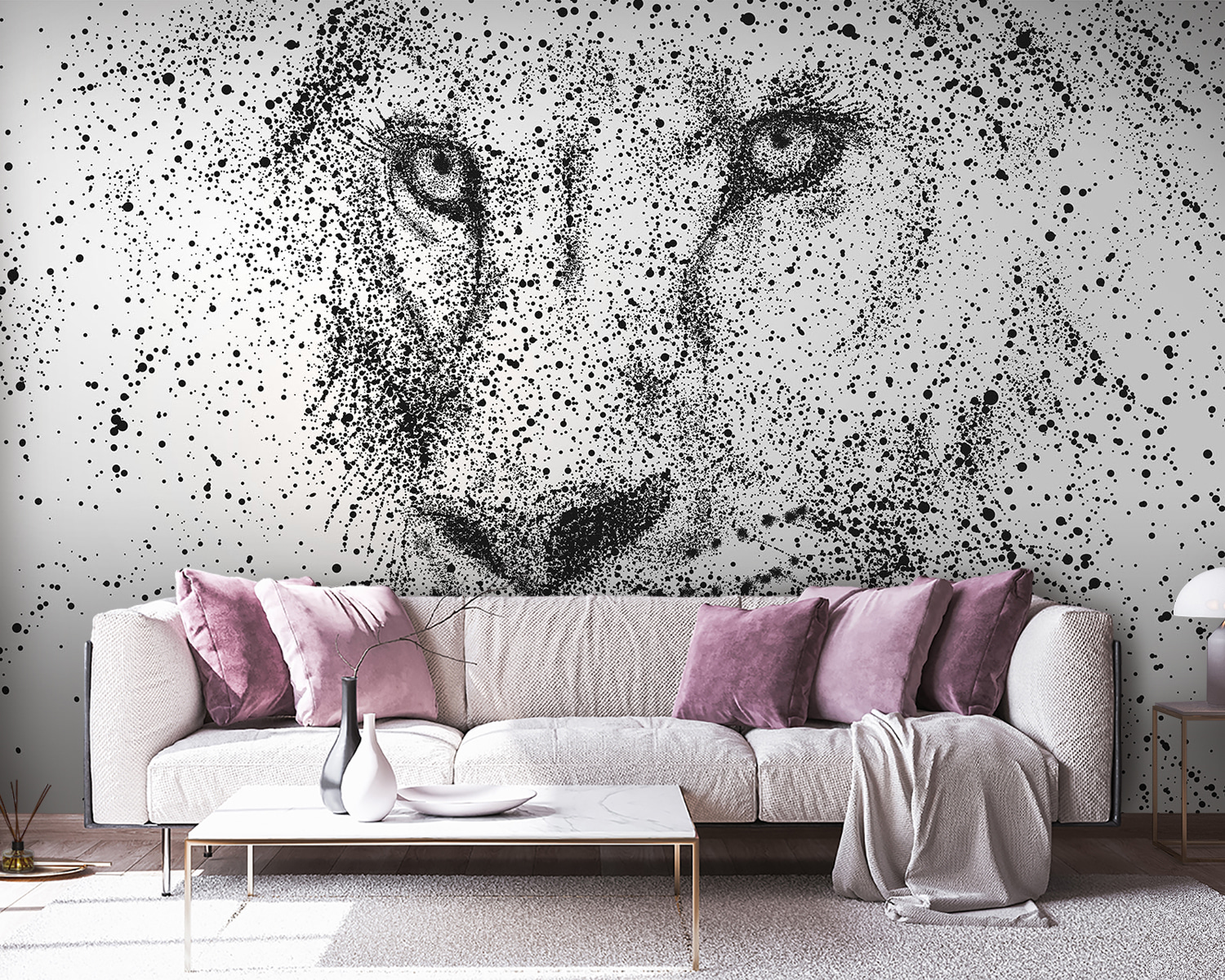 Transform your space with a striking wall mural featuring a lion’s face, crafted in bold black and white. This piece is more than just decor; it’s like having a majestic guardian watching over your room. Picture it—every time you walk by, that fierce gaze delivers a little rush of courage. The splatter effect adds a modern twist, blending art and wild nature right into your home. It sparks conversation, inspires daydreams, and maybe even makes you feel like you’re in a chic safari. Perfect for anyone who loves unique touches or wants to elevate their living space—this mural brings the wild side indoors without any of the roar!