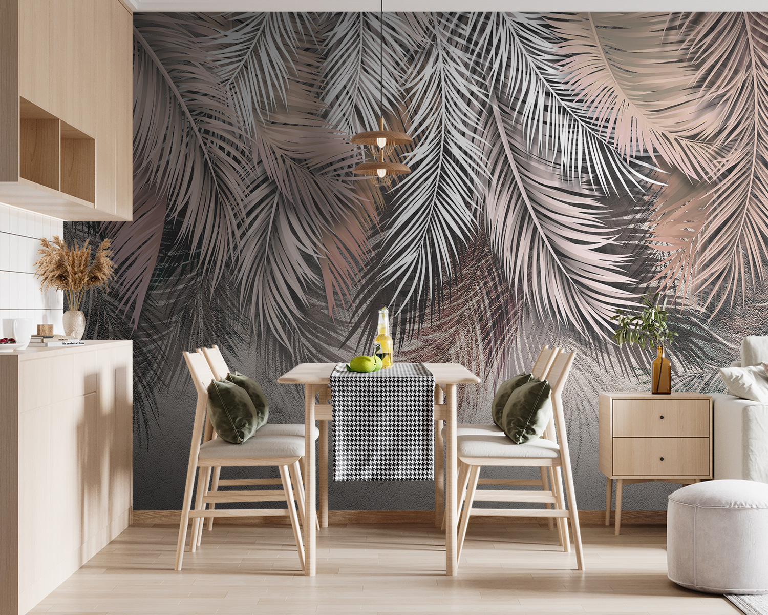 Transform any space into a tropical oasis with this stunning “Wall Murals Group of Palm Leaves.” Imagine walking into a room that feels like a light breeze and sun-soaked days, even if it’s just your living room. The soft hues of the palm leaves evoke a sense of calm—perfect for relaxing after a long day, or maybe just dreaming about that beach vacation.