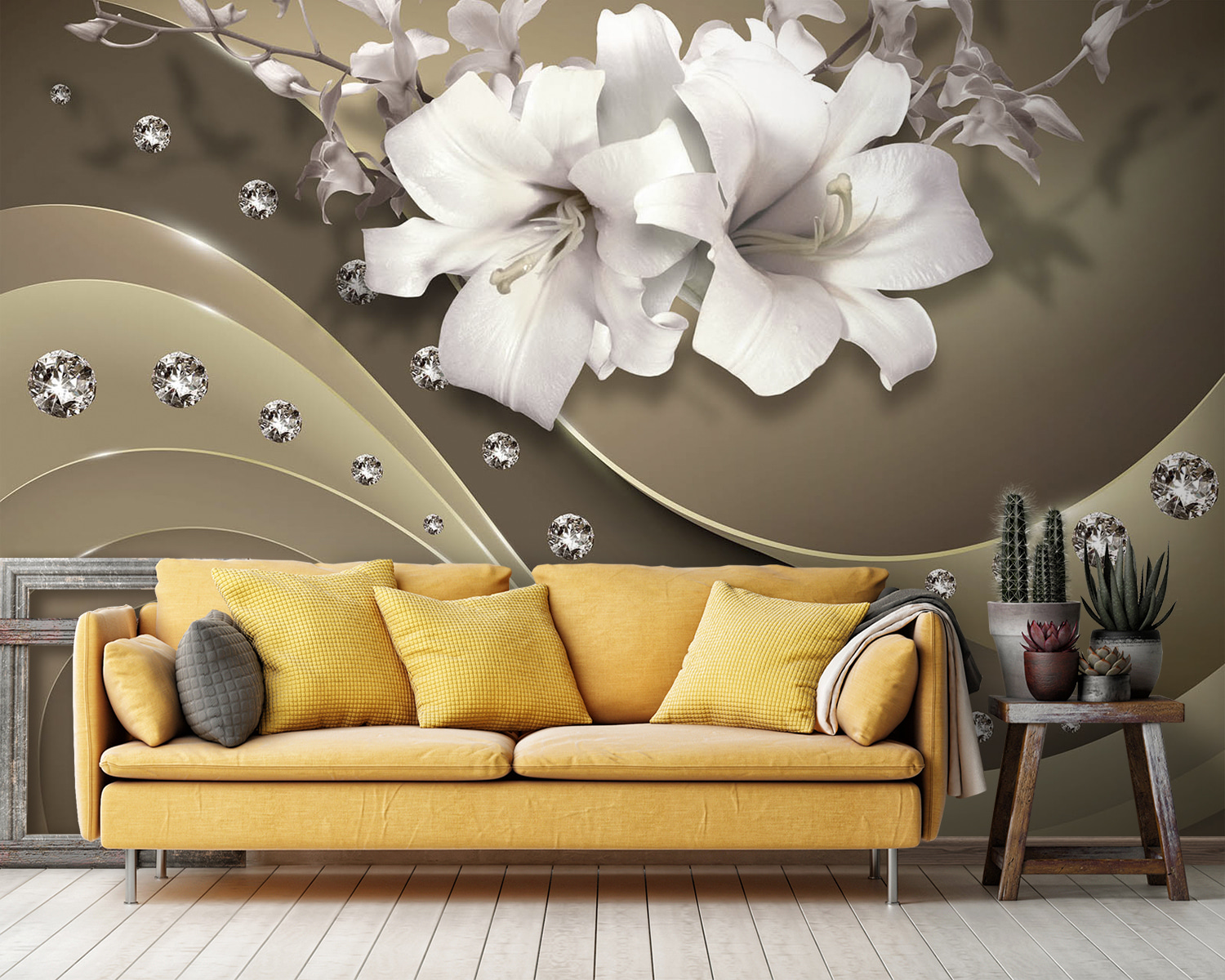 Step into a world where elegance blooms! This wall mural, “Elegant Flowers with Subtle Accents,” takes serene beauty to a whole new level. Imagine fresh lilies entwined with glitzy, sparkling touches that make your walls feel like a chic gallery. It’s not just decor—it’s like bringing a gentle spring breeze indoors. Picture hosting friends and watching their eyes light up as they admire your stylish flair. The soft colors and flowing lines create a calming vibe, perfect for unwinding after a long day or energizing your creative space. Transform that blank wall into something special!