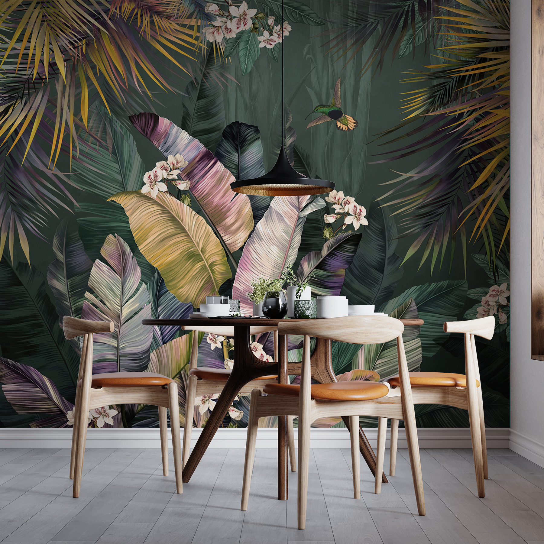 Transform your walls into a tropical getaway with this stunning mural, “Hummingbird Flying in the Air.” Imagine the vivid greens and soft pastels bringing a breath of fresh air into your space. It’s like having a tiny, lively bird flitting through your living room, creating that magical feeling of being surrounded by nature. Perfect for those days when a little sunshine inside feels just right. Plus, you can almost hear the gentle rustle of leaves and feel the lightness of the breeze every time you walk by. Who wouldn’t smile at the sight of those colorful blooms? Whether it’s for a cozy nook or a statement wall, this mural adds that chic, laid-back vibe—without the need for sunblock.