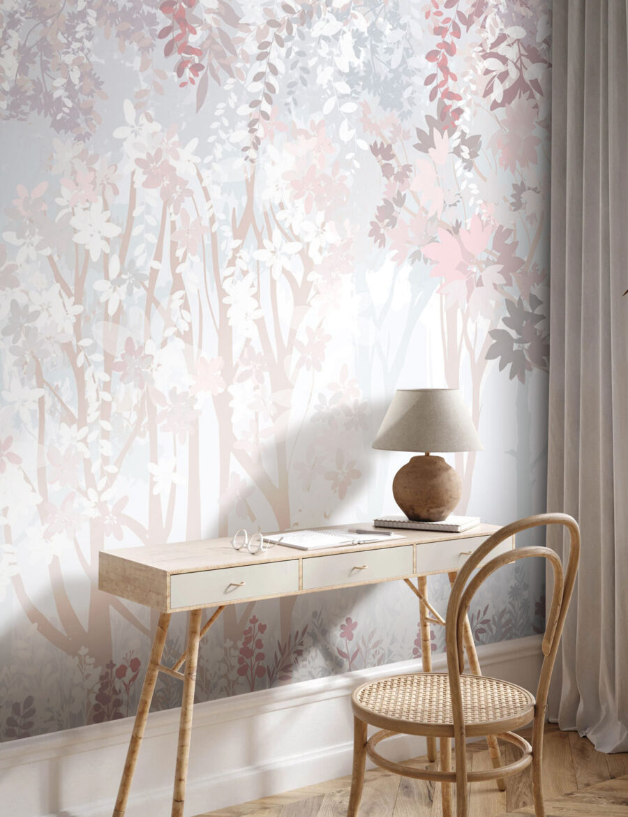 Transform your space into a dreamy escape with the “Pastel Forest with Delicate Foliage” wall mural. Imagine stepping into a serene forest where whispering leaves and gentle colors wrap around you like a cozy blanket. This mural effortlessly brings nature indoors—perfect for those days when a walk outside feels like a trek to the moon. The soft pastels and intricate foliage create a tranquil vibe, making any room feel lighter and brighter. You might even catch yourself daydreaming about forest adventures. Not just decor, it’s an experience! Enhanced by warm light, it’s like having a mini woodland retreat at home. Grab a cup of tea, sink into your favorite chair, and let those peaceful forest vibes wash over you.