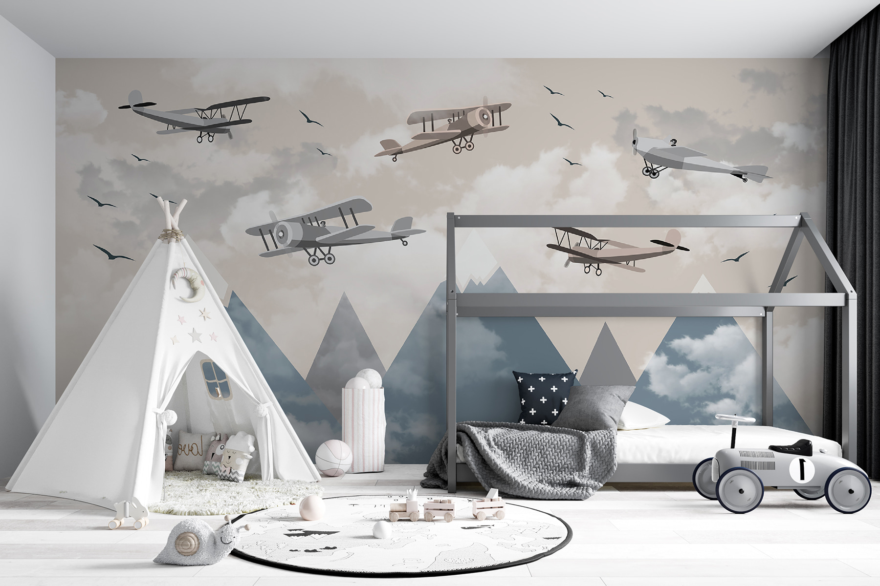 Imagine sipping coffee while gazing at this mural—feels like the start of a thrilling journey, doesn’t it? Maybe it sparks thoughts of flying away to distant places or even rekindles memories of childhood dreams. Whether it’s for a cozy nook, an office, or a playful kids’ room, this mural adds a touch of whimsy and wonder. Get ready to elevate your walls!