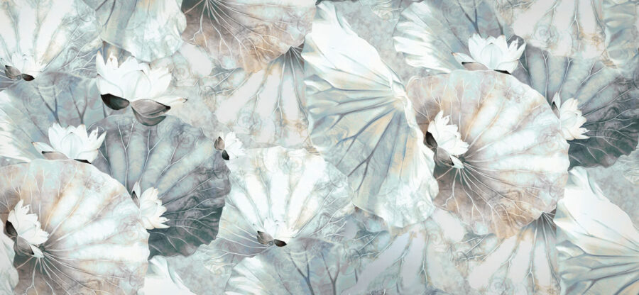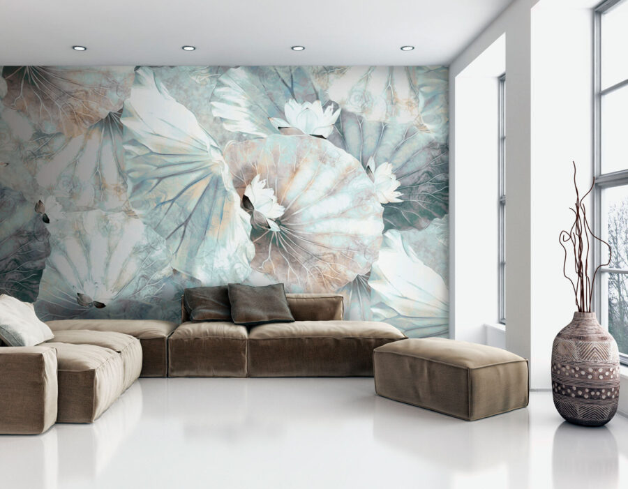 Transform your space with this stunning wall mural featuring elegant lotus blossoms and leaves. Imagine walking into a room where nature invites you in, with soft colors and graceful shapes bringing a sense of calm. It’s like having a little piece of a serene pond right in your home.