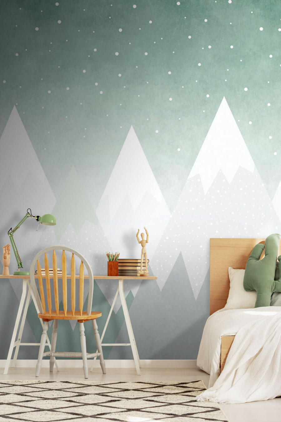 Transform any room into a cozy retreat with this stunning wall mural of snowy mountains. Imagine curling up with a cup of cocoa, gazing at the serene peaks that seem to whisper tales of adventure and tranquility. The soft color palette brings a gentle calm, perfect for unwinding after a long day. It’s like bringing a slice of nature indoors, minus the cold and the hiking boots! Feels like a snow globe in your living space, inviting daydreams of winter wonderlands. Whether it’s a statement wall or a subtle backdrop, this mural effortlessly sparks joy and a sense of peace. Who wouldn’t want to wake up to this enchanting view every day?