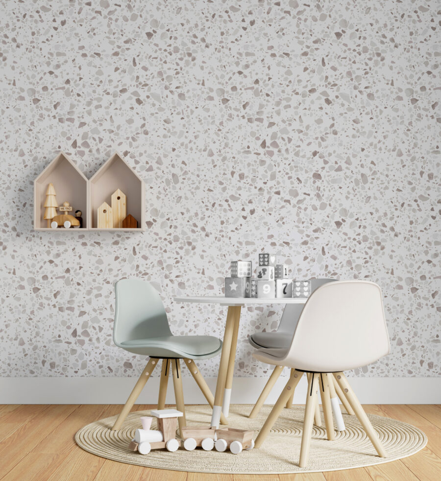 Transform your space with this delightful wall mural featuring a white speckled terrazzo texture. It’s like a playful dance of tiny stone bits, adding a fresh and chic vibe to any room. Imagine stepping into your living space, and bam! Instant style boost. Perfect for cozy corners or wide-open walls, this mural is versatile enough to fit any decor. Plus, it’s peel and stick, so switching up your surroundings is a breeze. Who doesn’t love a little change now and then? Bring that effortless charm into your home and let the good vibes flow.