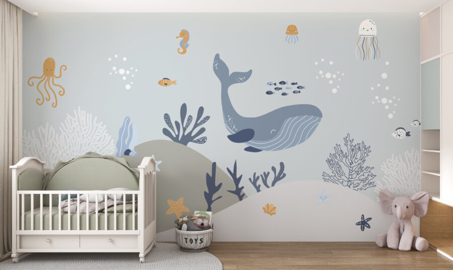 Dive into the charm of this octopus mural, where underwater whimsy meets vibrant artistry! Picture a cozy room transforming into an ocean wonderland. The playful octopus brings a splash of personality, while friendly fish and waving corals add life to any wall. Just imagine sipping your morning coffee, daydreaming of sea adventures—who wouldn’t feel a little lighter? This mural isn’t just decor; it’s a conversation starter, a smile inducer, and maybe even a tiny escape to the deep blue. Perfect for kids’ rooms or any space craving a bit of marine magic!