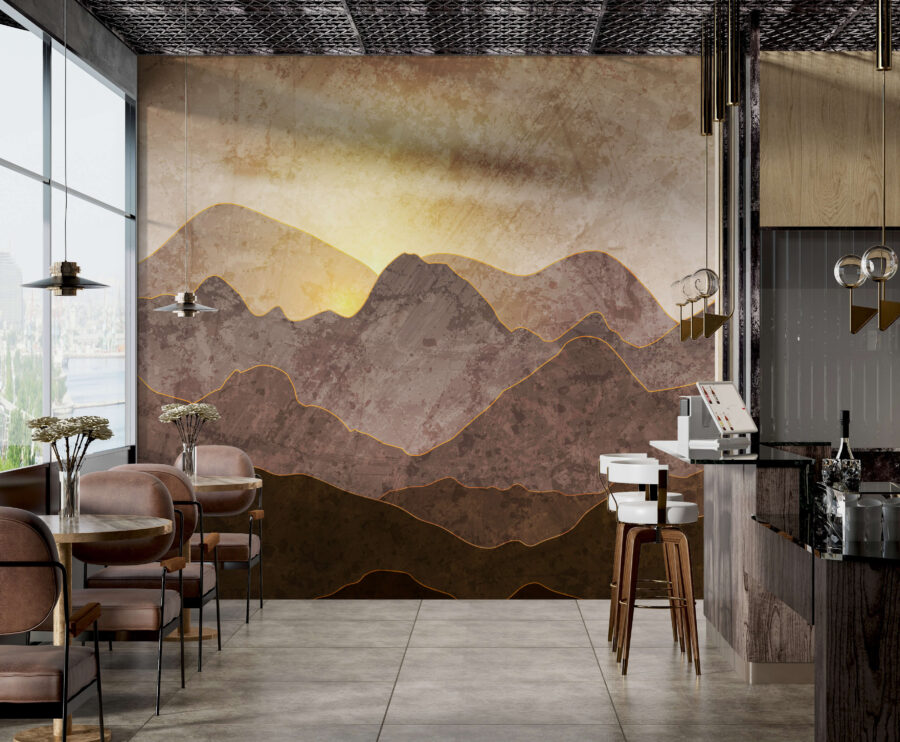 Transform your space with this stunning wall mural, featuring a serene mountain scene kissed by soft yellow lines. It’s like bringing a piece of nature right into your home without the hiking boots. Imagine waking up to this calming beauty every day—it’s a breath of fresh air! The gentle earthy tones create a cozy vibe, while those playful yellow lines add a dash of whimsy. Perfect for any room, it’ll spark conversations and daydreams. Just picture a rainy afternoon, snuggled up with a good book, basking in this picturesque view. Who wouldn’t love that?