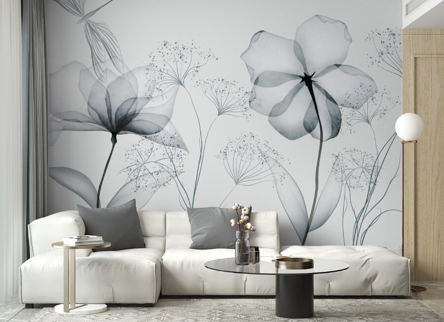 2 reviews for Wall murals Delicate flowers in monochrome design