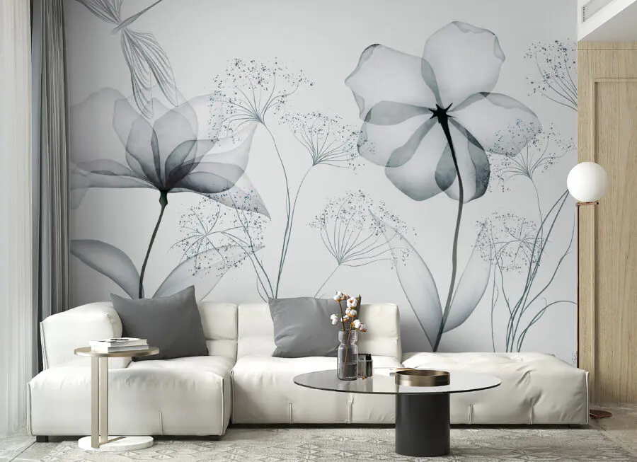 Transform your space into a serene oasis with the “Delicate Flowers in Monochrome” wall mural. Picture this: soft, flowing petals and wispy stems creating a calm backdrop that invites tranquility. Imagine sipping your morning coffee while basking in the subtle elegance of these blooms. The monochrome design keeps it chic, making it perfect for any room—whether it’s a cozy corner or a main wall. It’s like bringing a garden indoors without the upkeep. So, say goodbye to bare walls and hello to a peaceful floral panorama that encourages daydreams and smiles. Just don’t blame it if you find yourself talking to the flowers—they’re surprisingly good listeners!
