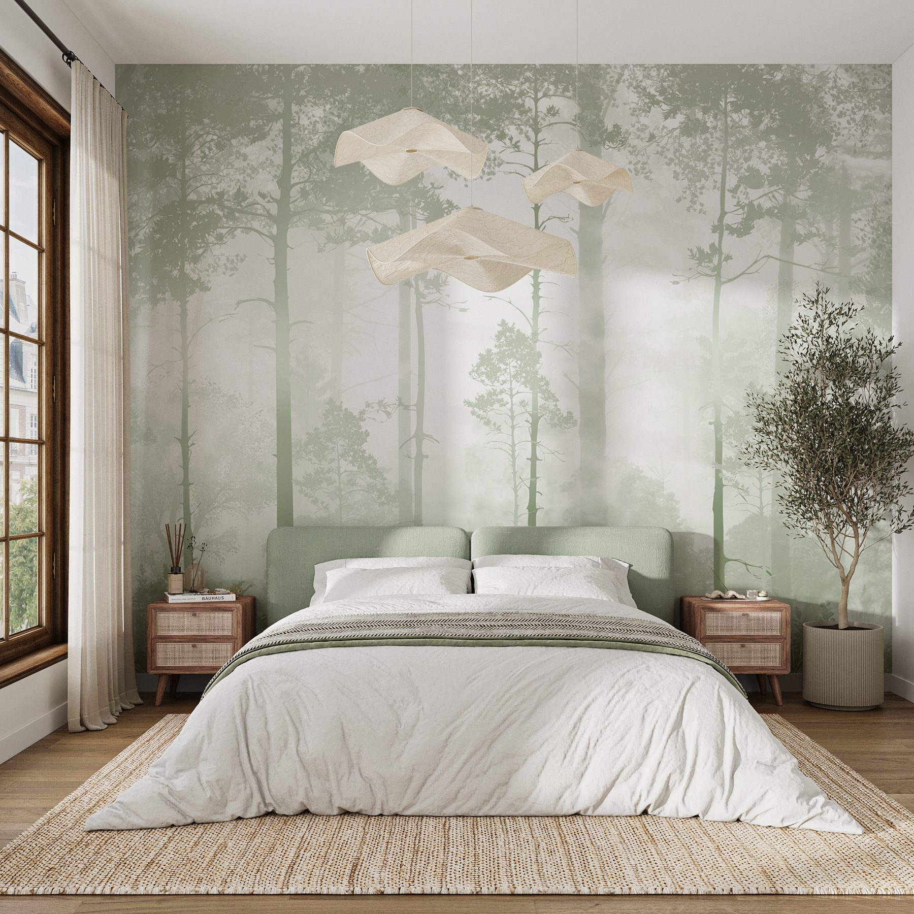 Imagine stepping into a gentle, mystical forest every time you walk into a room. This wall mural, “Foggy Forest with Tall Trees,” brings that enchanting magic right to your space. It’s like inviting the crisp air and soft whispers of nature indoors. Picture having coffee while gazing at towering trees wrapped in a blanket of fog—serenity at its finest.