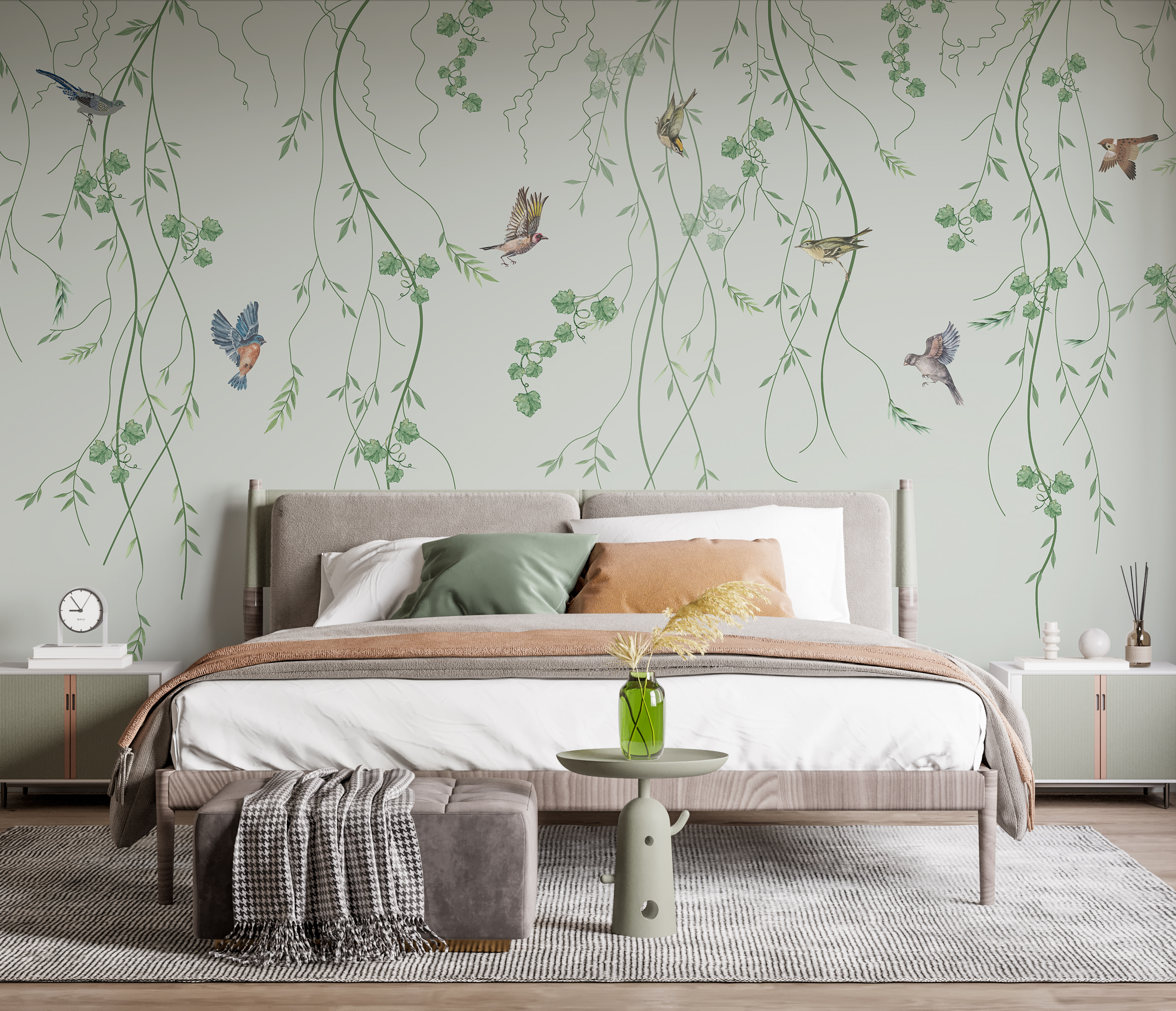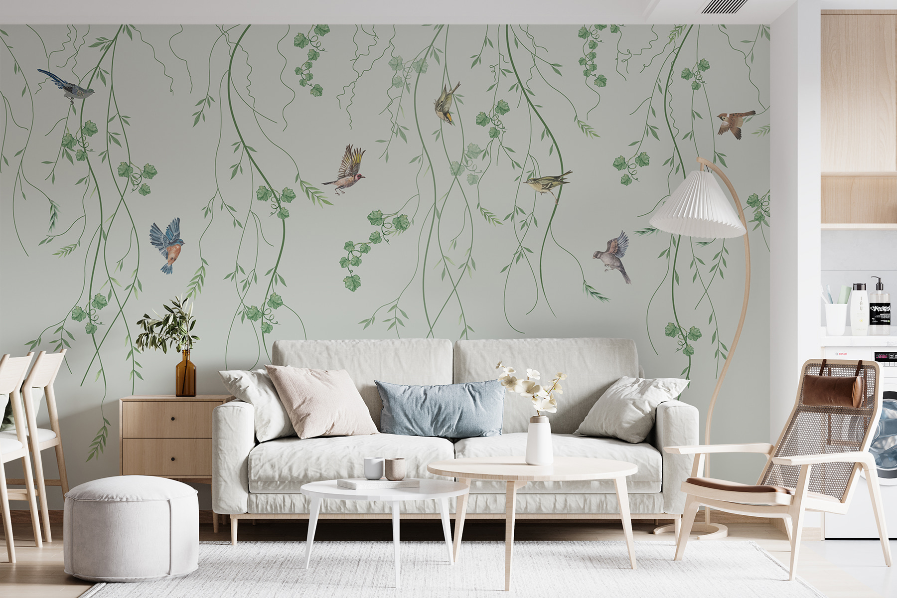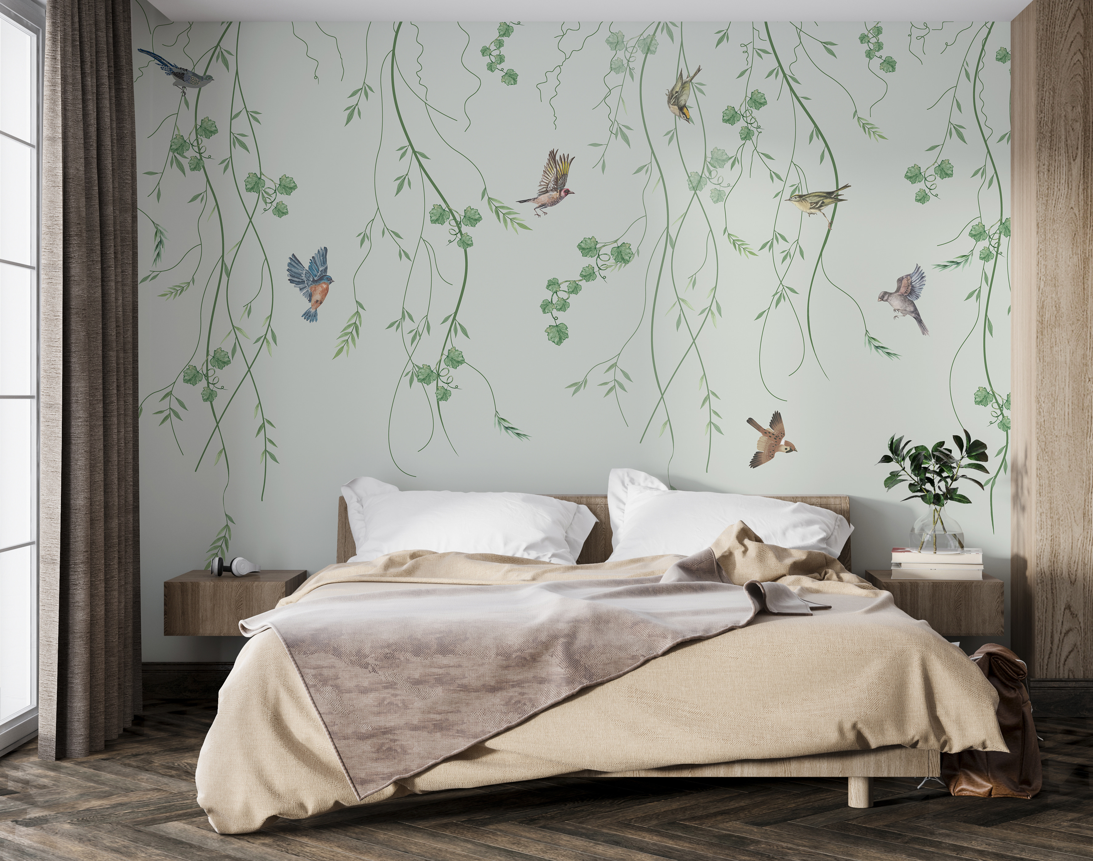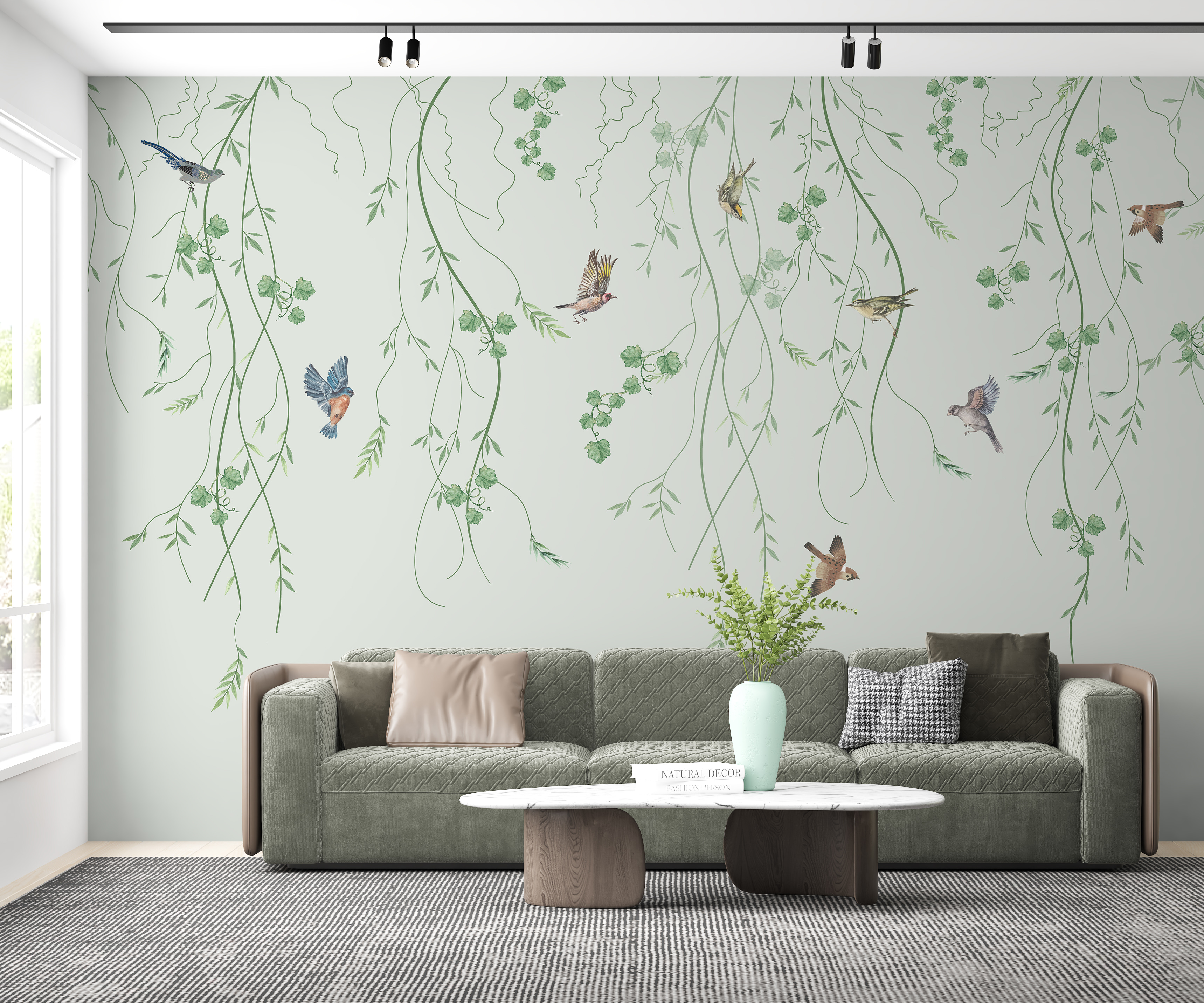 Transform your space into a serene oasis with this charming mural, “Birds Flying Among Hanging Vines.” Imagine waking up each day to the gentle sight of vibrant birds flitting through lush greenery. It’s like the outdoors invited itself right into your home. Picture hosting friends, sipping coffee, and chatting away while they admire the whimsical vibe it brings. Each bird seems to have its own story, and trust us, they’ll definitely inspire some delightful daydreaming. This mural isn’t just a decoration; it’s an experience that turns any room into a haven of nature’s beauty. Perfect for those who love a touch of whimsy and a splash of color.