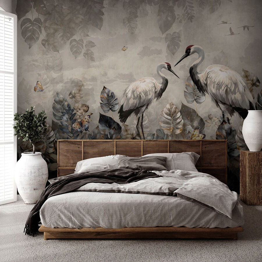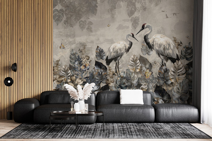 Transform your space into a serene oasis with the “Wall Murals Crane with a Fish in Its Beak.” This stunning artwork captures a moment of nature’s elegance—two graceful cranes amid lush foliage, perfectly paired with delicate butterflies. Imagine sitting back with a cup of tea, feeling the calm wash over you as these majestic birds invite tranquility into your room. The muted colors and intricate details create an atmosphere that’s both chic and cozy. It’s like having your own slice of the wild, right on your walls—nature’s reminder to breathe and soak in beauty. Perfect for any room that needs a touch of grace!