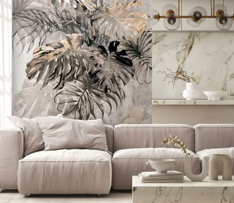 Transform your space with this stunning wall mural featuring abstract tropical leaves in sleek grayscale. It’s like a touch of the jungle meets modern chic—perfect for those who love a bit of nature without the maintenance. Imagine waking up to this serene backdrop, where every leaf whispers calmness. Plus, the subtle textures create visual interest, making it feel alive. Friends will definitely want to stop and admire it, maybe even touch it. It’s a beautiful conversation starter! Bring a slice of urban jungle sophistication into your home—because who needs a green thumb when you can have art?