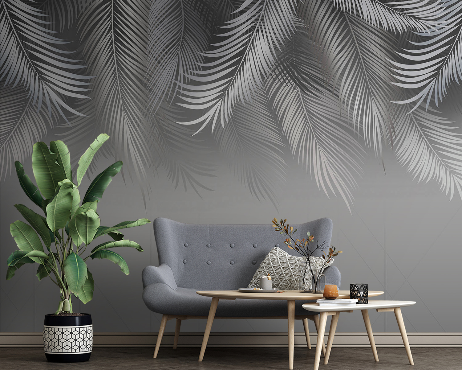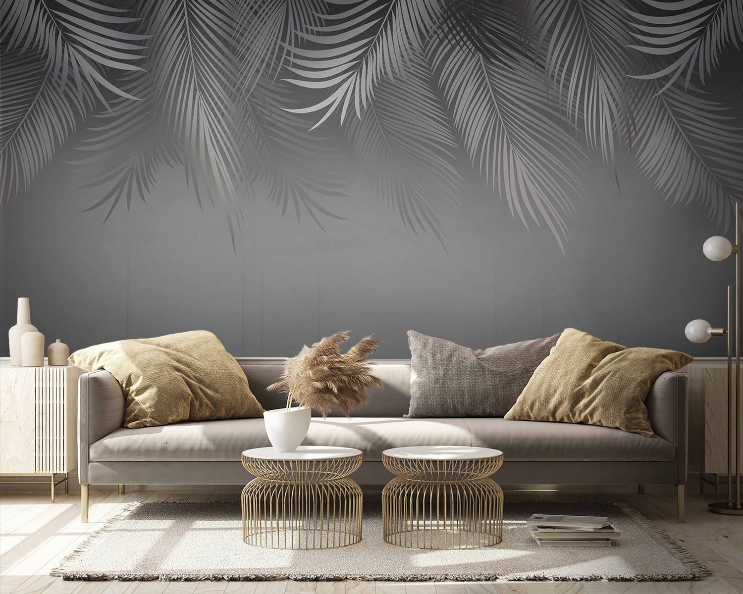 Bring a touch of the tropics home with this stunning wall mural featuring silver palm leaves sweeping gracefully over a soft gray background. Imagine stepping into a serene oasis every time you walk into the room. It’s like having a mini vacation right on your wall, minus the plane ticket. The gentle curves of the leaves create a calm vibe, perfect for unwinding after a long day, or maybe even while sipping a tropical drink—umbrella optional.