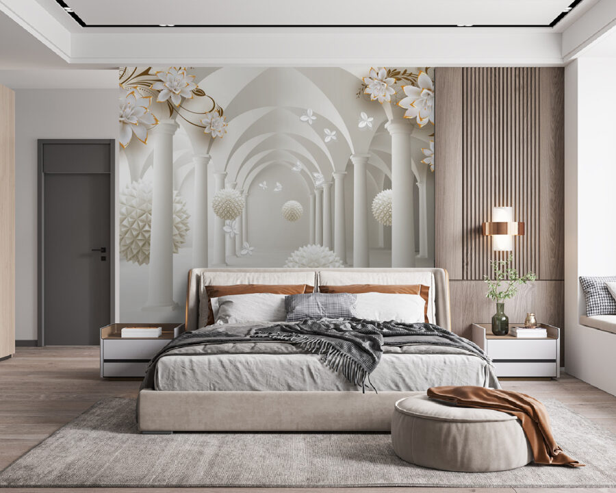 Transform any space into a dreamy retreat with the “Elegant Hall with Floating Floral Spheres” mural. Picture this: you walk into a room, and boom! You’re greeted by stunning floral designs swirling above, with those charming spheres just floating there, like a whimsical daydream. It brings a lightness and elegance that makes you want to linger.
