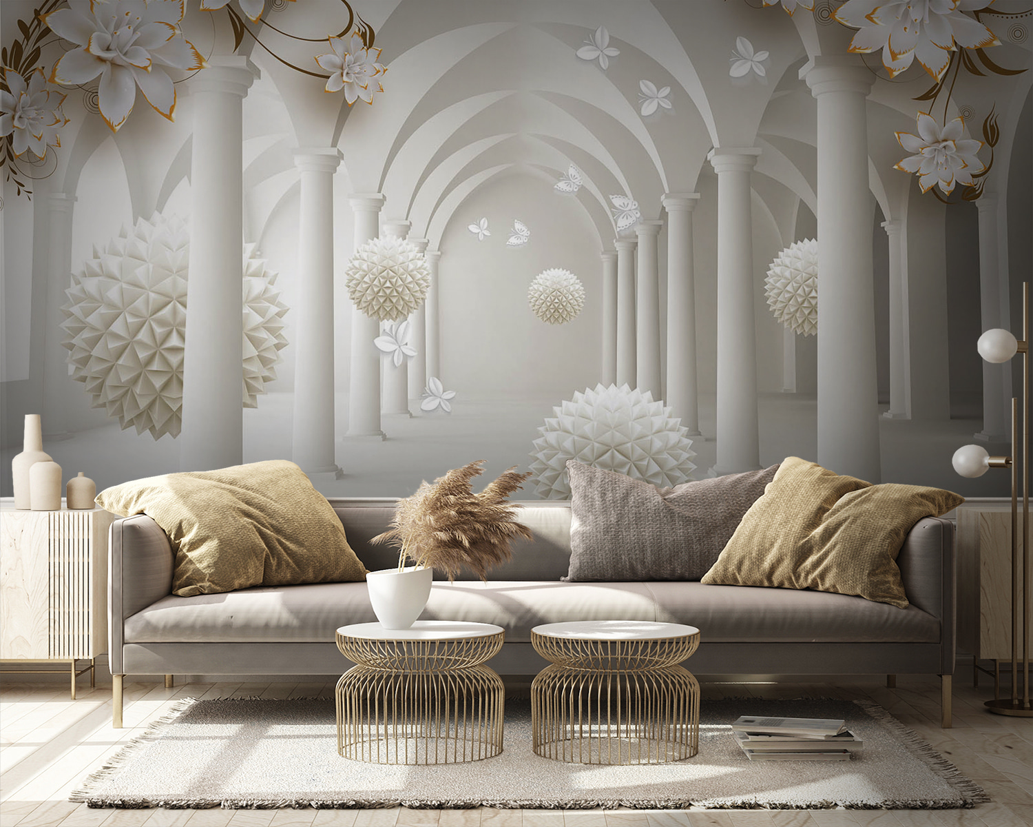 Transform any space into a dreamy retreat with the “Elegant Hall with Floating Floral Spheres” mural. Picture this: you walk into a room, and boom! You’re greeted by stunning floral designs swirling above, with those charming spheres just floating there, like a whimsical daydream. It brings a lightness and elegance that makes you want to linger.
