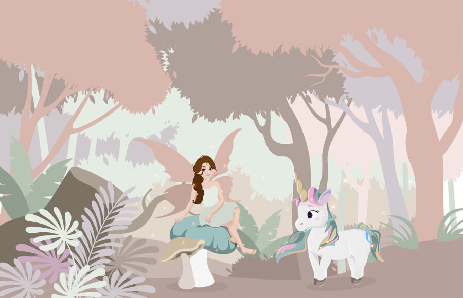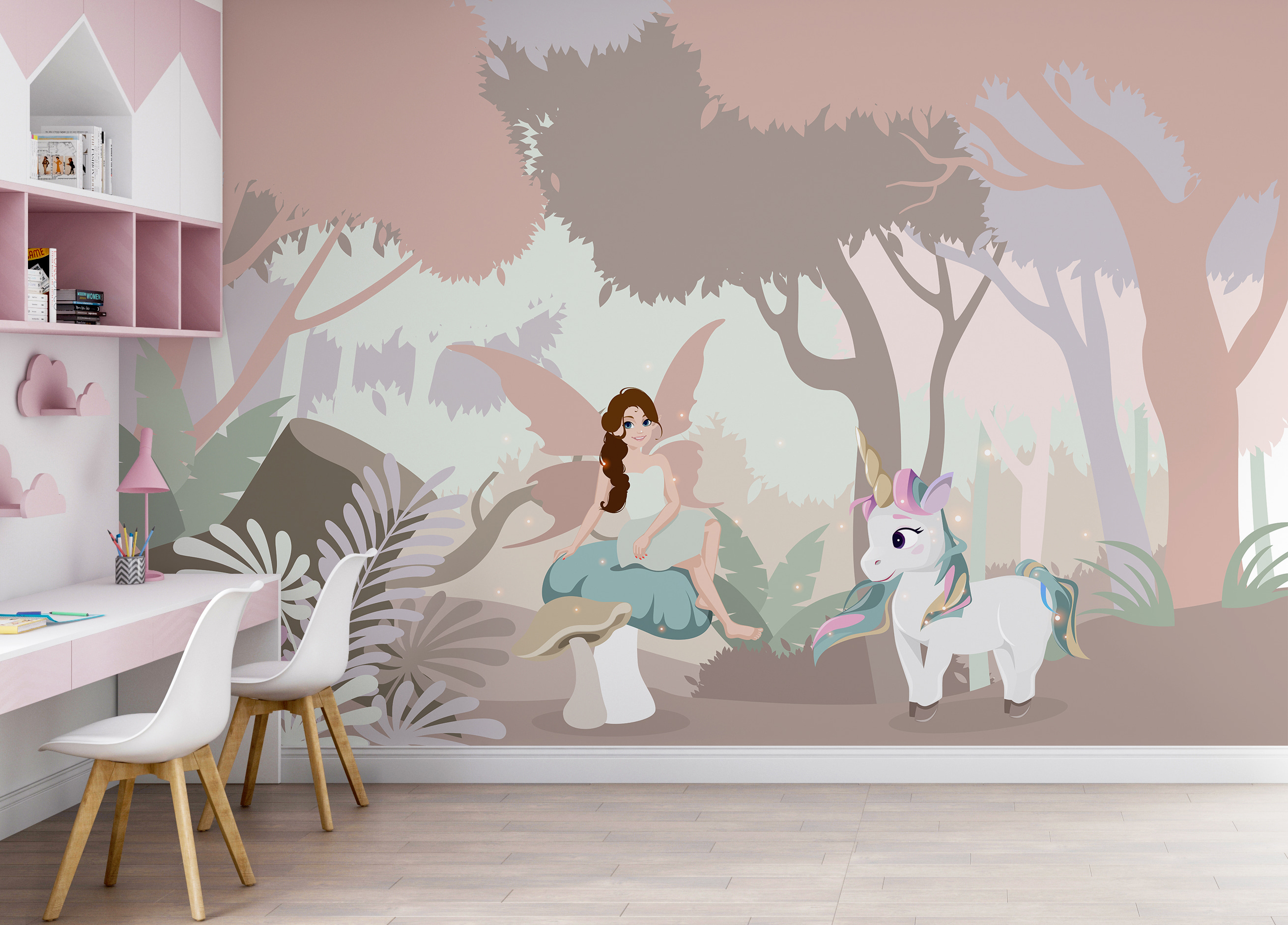 Transform any space into a whimsical getaway with this delightful wall mural featuring a serene unicorn and a charming fairy. Imagine walking into a room where magic and nature collide—because who doesn’t want a sprinkle of enchantment in their life? The soft pastel hues create a calming backdrop, perfect for snuggling up with a good book or daydreaming.