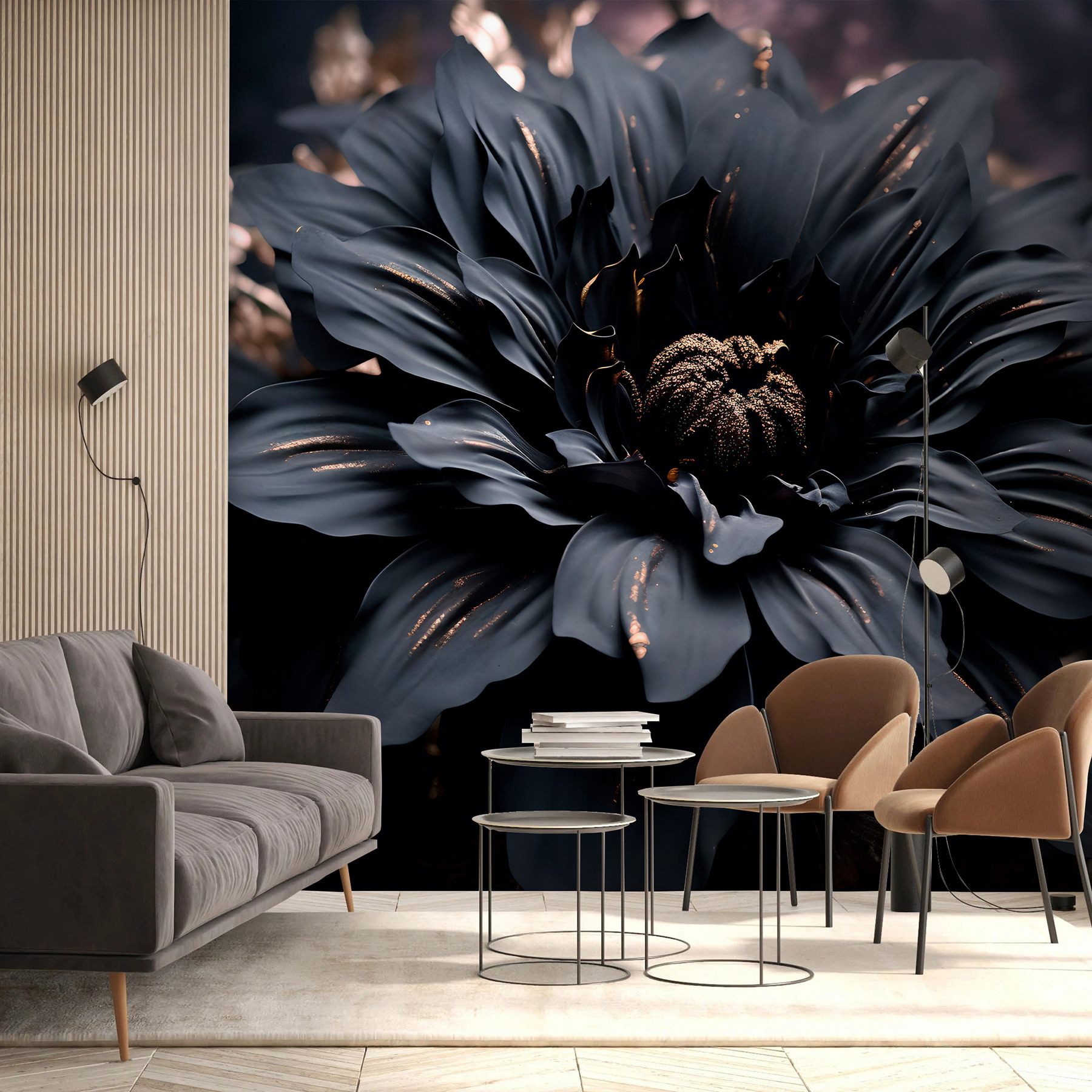 Elevate any room with the “Dark Blossom Illuminated from Within” mural. This intriguing piece brings a touch of mystery, as if a flower has stepped right out of a dream. The deep, dark hues wrap around the petals, giving them a sense of depth that captures the eye. Imagine walking into a space and feeling instantly enchanted by the soft yet captivating atmosphere. It’s like having a piece of secret garden magic on your wall—perfect for sparking conversations during those cozy get-togethers. The design whispers elegance with a playful twist, inviting anyone to imagine the stories the blossoms might tell if they could. Who wouldn’t want that kind of charm brightening their space?