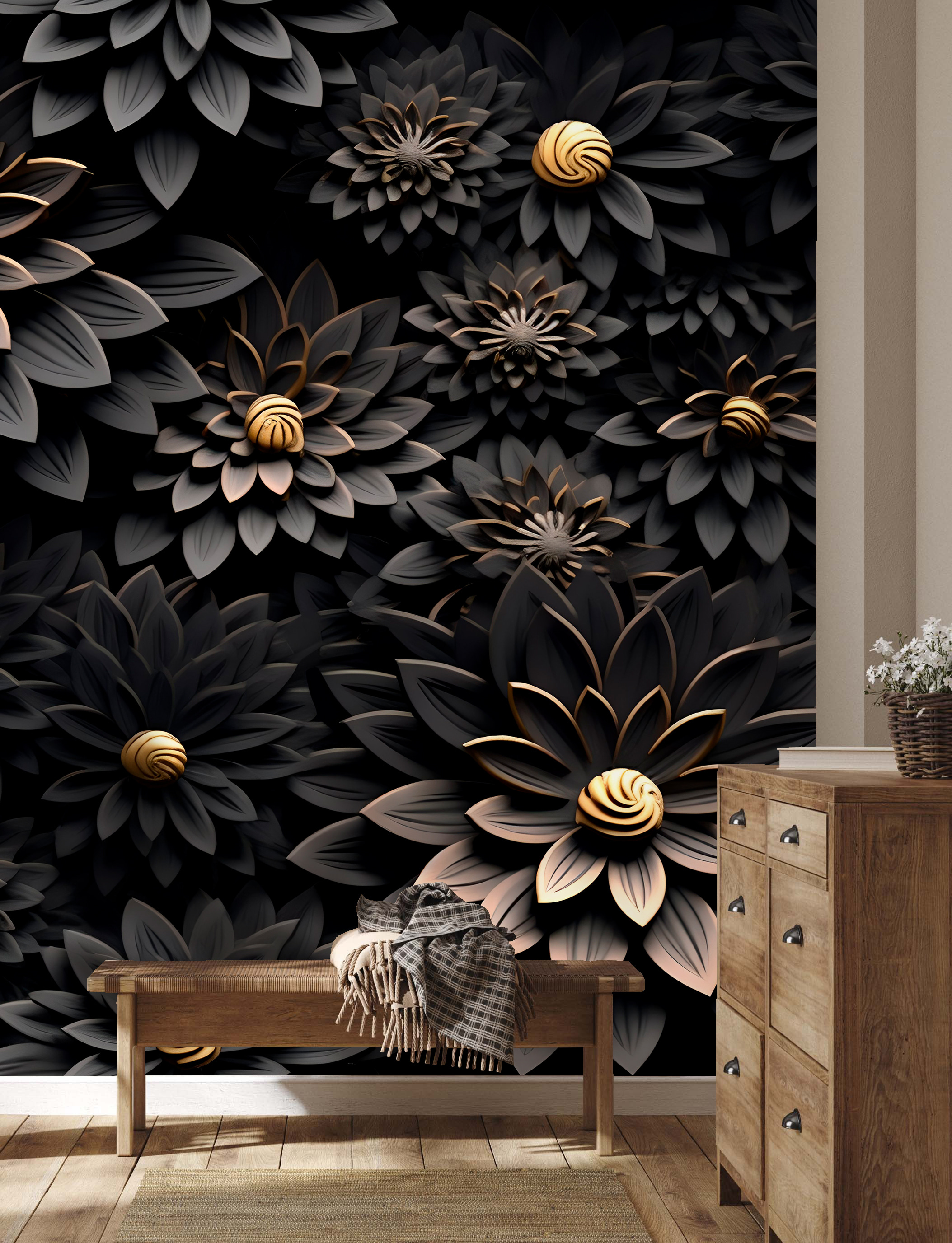 Transforming a space can be as simple as a glance at this stunning wall mural. With bold flowers blooming against a deep backdrop, it’s like a secret garden waiting to be discovered right in your home. Picture lounging on the couch, a warm drink in hand, and letting this mural take you on a journey. The vibrant images pop, inviting guests to linger and chat about the artistry. Need a conversation starter? This mural is perfect! It’s sophisticated yet playful, bringing in an air of whimsy. Let nature’s beauty envelop your walls and watch your space come alive!