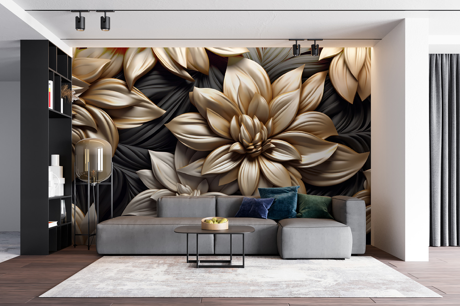 Imagine walking into a room that feels like a cozy garden party—all thanks to this stunning wall mural. With its intricate floral designs swirling around like a gentle breeze, it brings a touch of nature right to your walls. Picture hosting friends who can’t help but admire the elegance of those blooms; it’s bound to spark more than a few compliments. The rich colors play with light in a way that makes the room feel alive, creating a perfect backdrop for those lazy Sunday mornings or lively evenings. It’s all about setting the vibe, and this mural does just that—like bringing the beauty of a flower shop straight home.