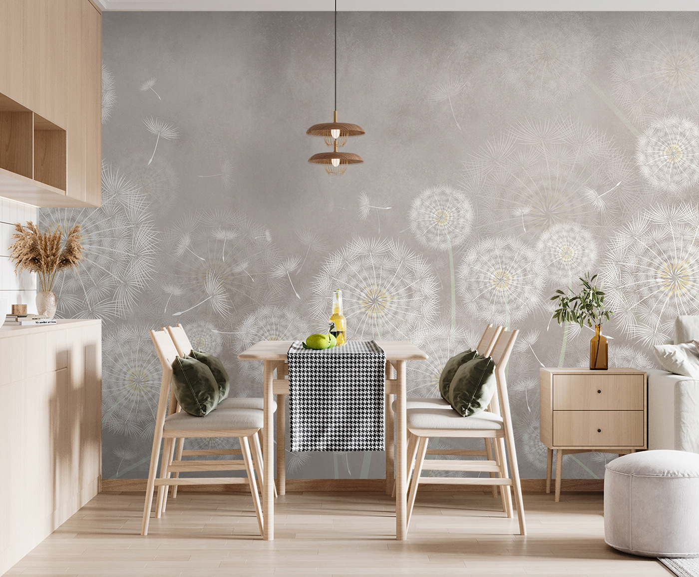 Transform any space into a dreamy escape with the “Dandelions Dancing in the Breeze” mural. Imagine strolling through a soft, serene field where delicate dandelions sway as if sharing a little secret with the wind. This mural captures that feeling perfectly, bringing a sprinkle of nature right into your home. The gentle, muted colors allow it to blend effortlessly into any room, creating a calm vibe.