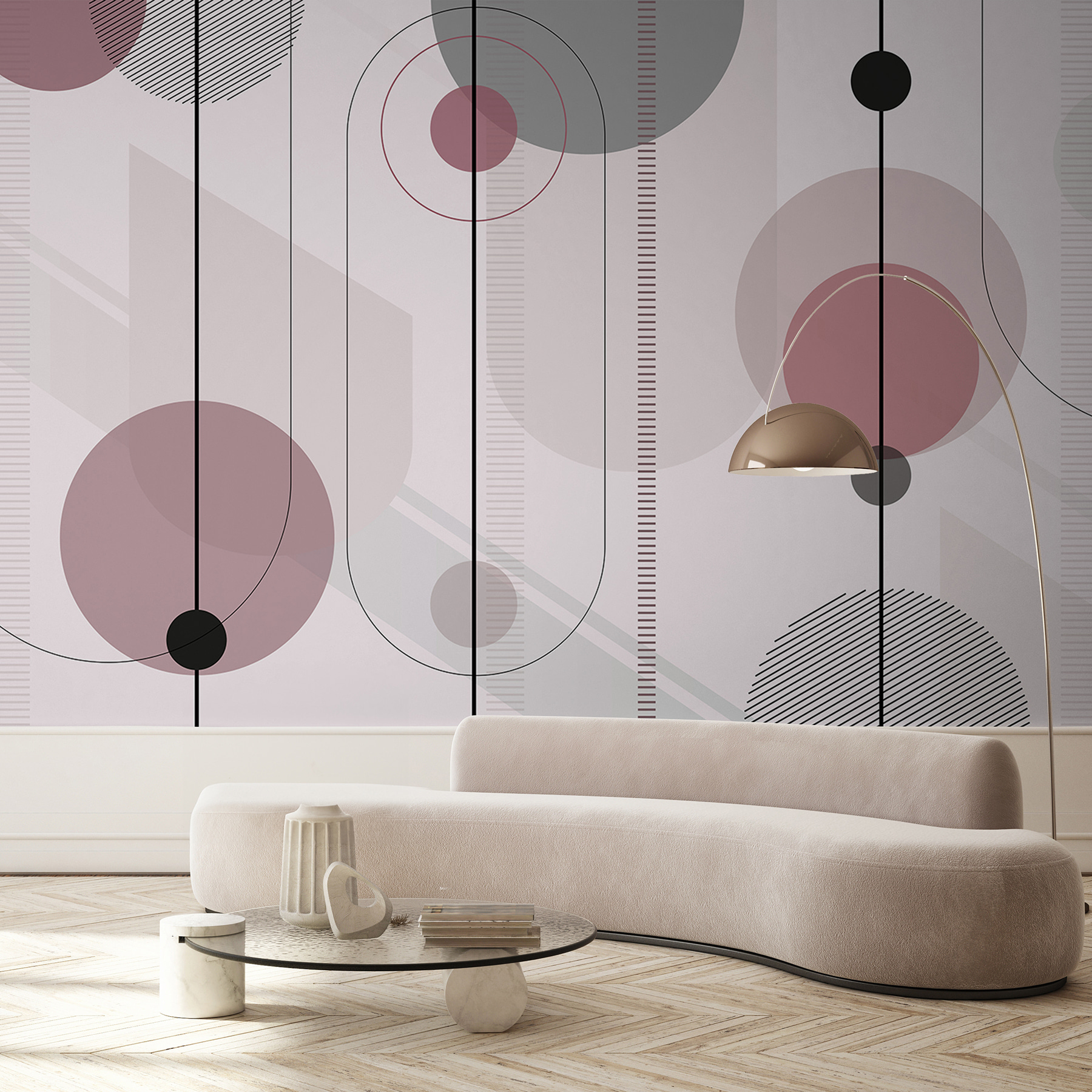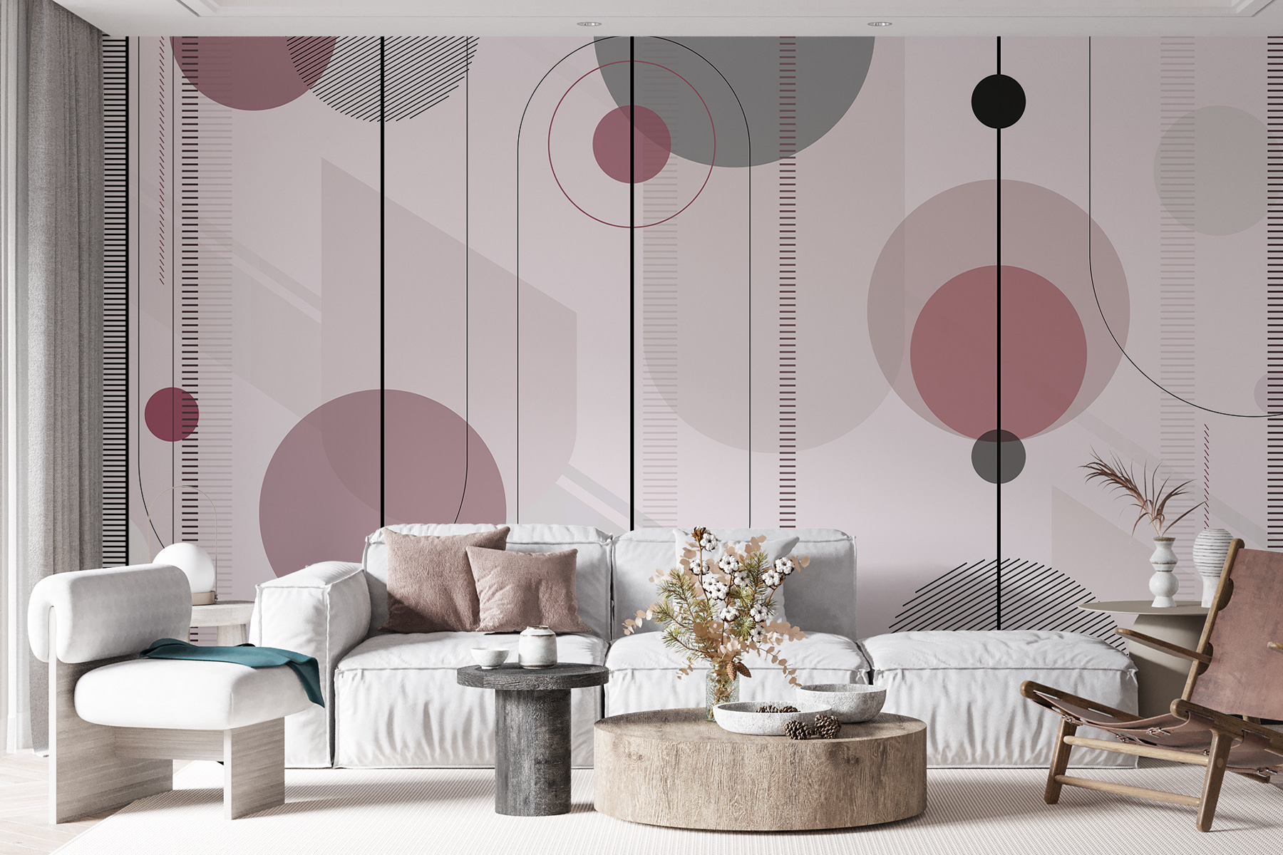 Brighten up any room with this stunning wall mural featuring abstract circles and lines. It’s like having a piece of modern art right on your wall—no fancy gallery needed! Imagine the soft blush and deep charcoal hues bringing a cozy warmth, yet it feels fresh and contemporary. It’s perfect for sparking conversations when friends drop by. Maybe someone will admire it while sipping coffee, and someone else will get lost in the lines, contemplating life’s mysteries. Each glance reveals a new detail, and honestly, isn’t that what art is all about? Perfect for a living room or creative space, this mural adds a personal touch that won’t go unnoticed.