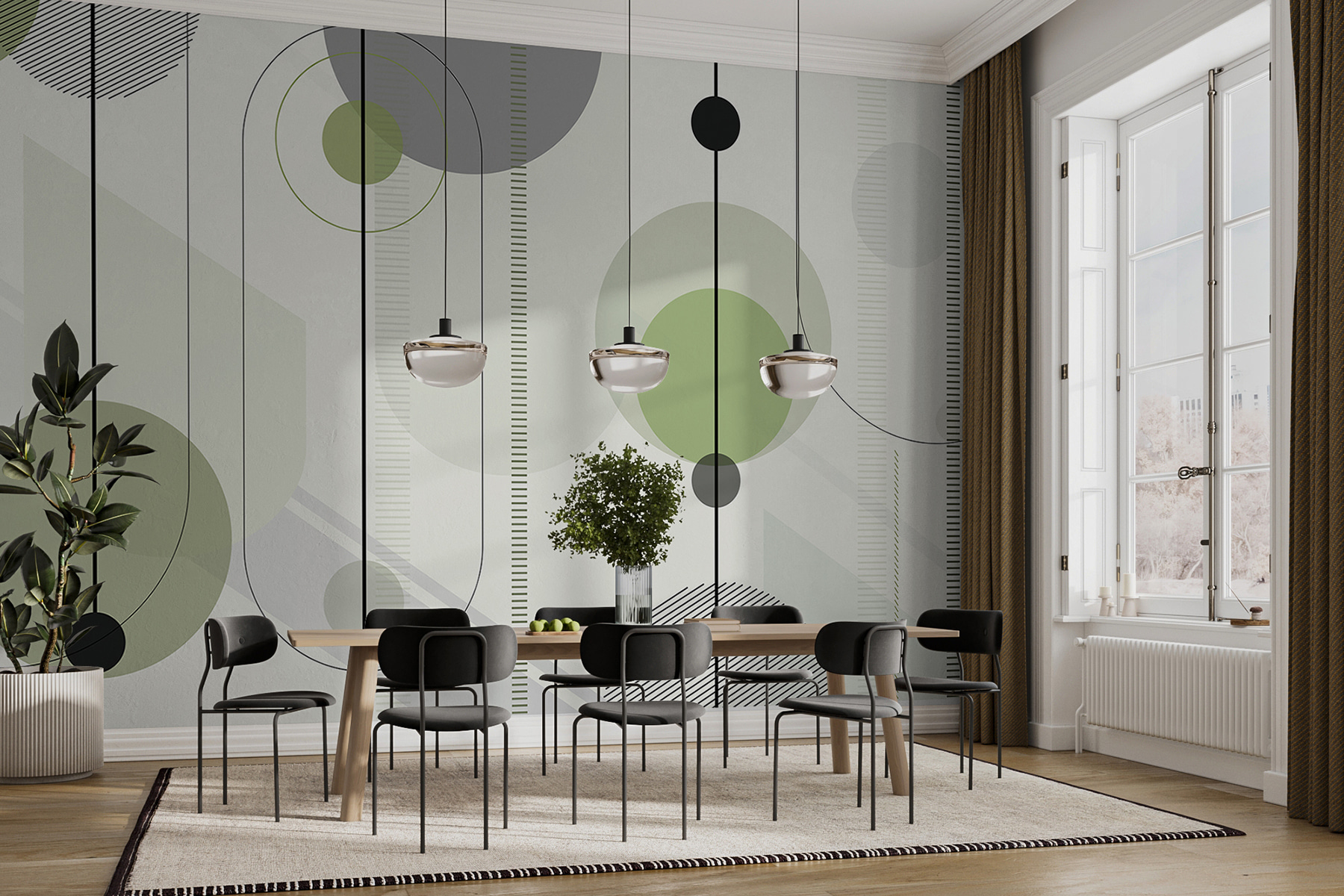 Transform your space with this eye-catching wall mural, “Black Circle with White Lines.” It’s like a blend of modern art and nature’s calm all wrapped up in one gorgeous design. Imagine walking into your room and being greeted by the soothing tones of greens and blacks, creating a vibe that says “serene oasis.”