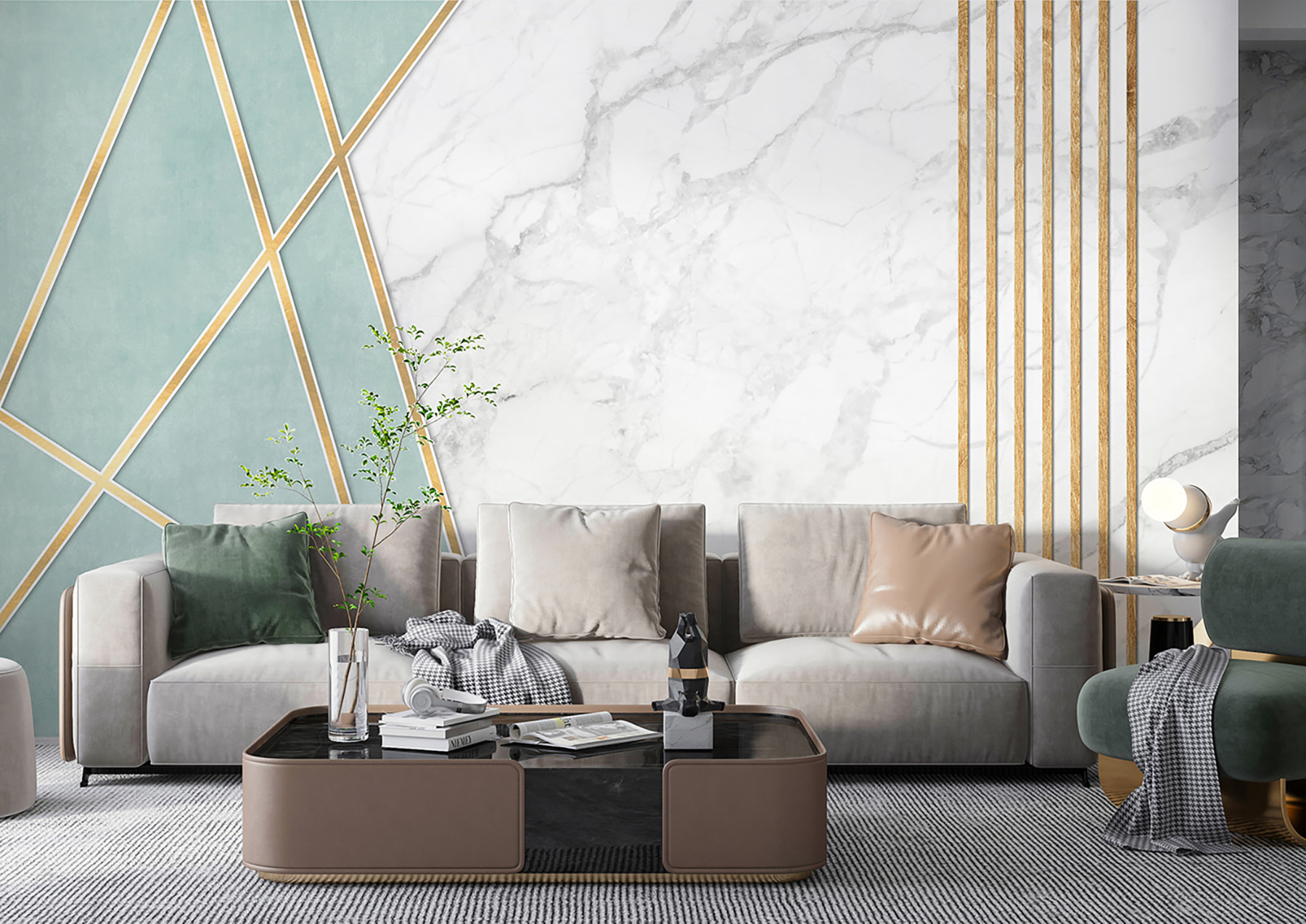Transform your space with the elegance of this wall mural, where stunning lines dance against a marbled backdrop. Imagine walking into a room that instantly feels sophisticated yet inviting, like a cozy café that just happens to have fabulous decor. The geometric patterns bring a playful twist to any wall, sparking curiosity and conversation. It’s perfect for that one wall begging for some love or maybe even a backdrop for your new favorite reading nook. Feeling inspired yet? It’s the kind of piece that makes a home feel complete, almost like a warm hug for your walls. Perfect for those moments of reflection or when hosting friends, it turns everyday living into an artful experience.