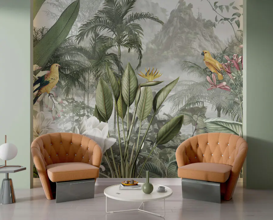 Wall murals Wall murals Tropical paradise with vibrant birds (SKU: u95396)
