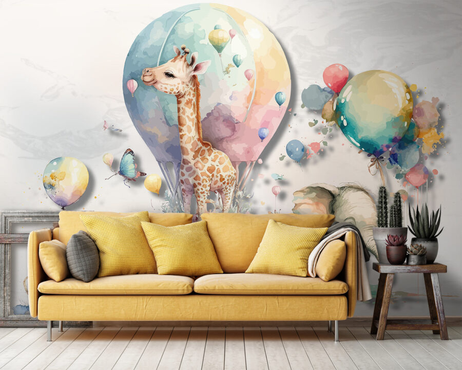 Brighten up any space with this “Watercolor of a Lion” wall mural, where charm and whimsy collide. Imagine walking into a room and being greeted by a playful little lion, all soft colors and gentle strokes, just ready to embrace you with warmth. It’s like inviting a bit of nature into your home—seriously, who needs a boring old wall? This mural just whispers adventure, with its dreamy vibe that could spark fun conversations or maybe daydreams of far-off places. Perfect for nurseries, kids’ rooms, or any corner that needs a splash of joy! It’s a touch of wildness that feels surprisingly cozy. Plus, who wouldn’t giggle at a scene where a baby elephant is literally just hanging out with balloons? Adorable! Transform your walls into a canvas of lively stories and let your imagination soar.