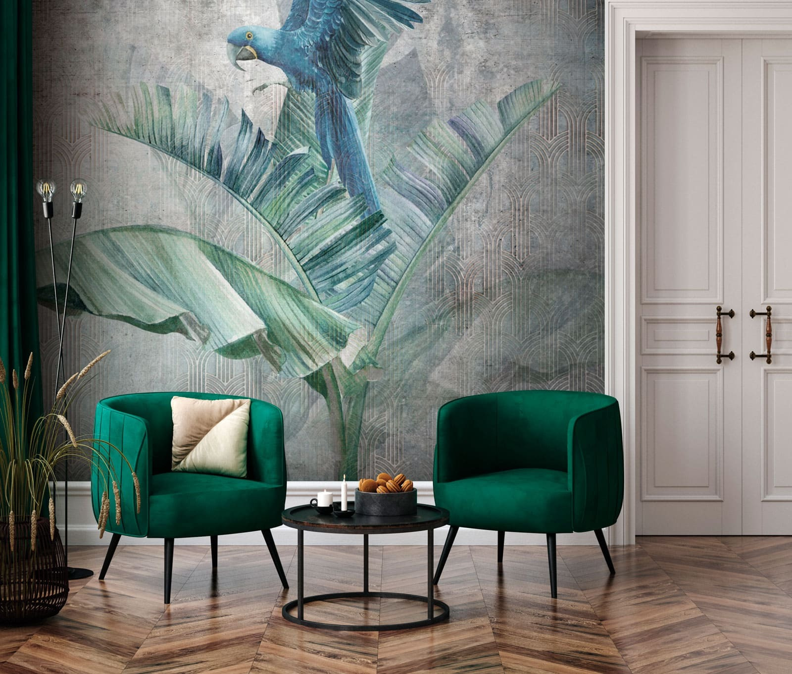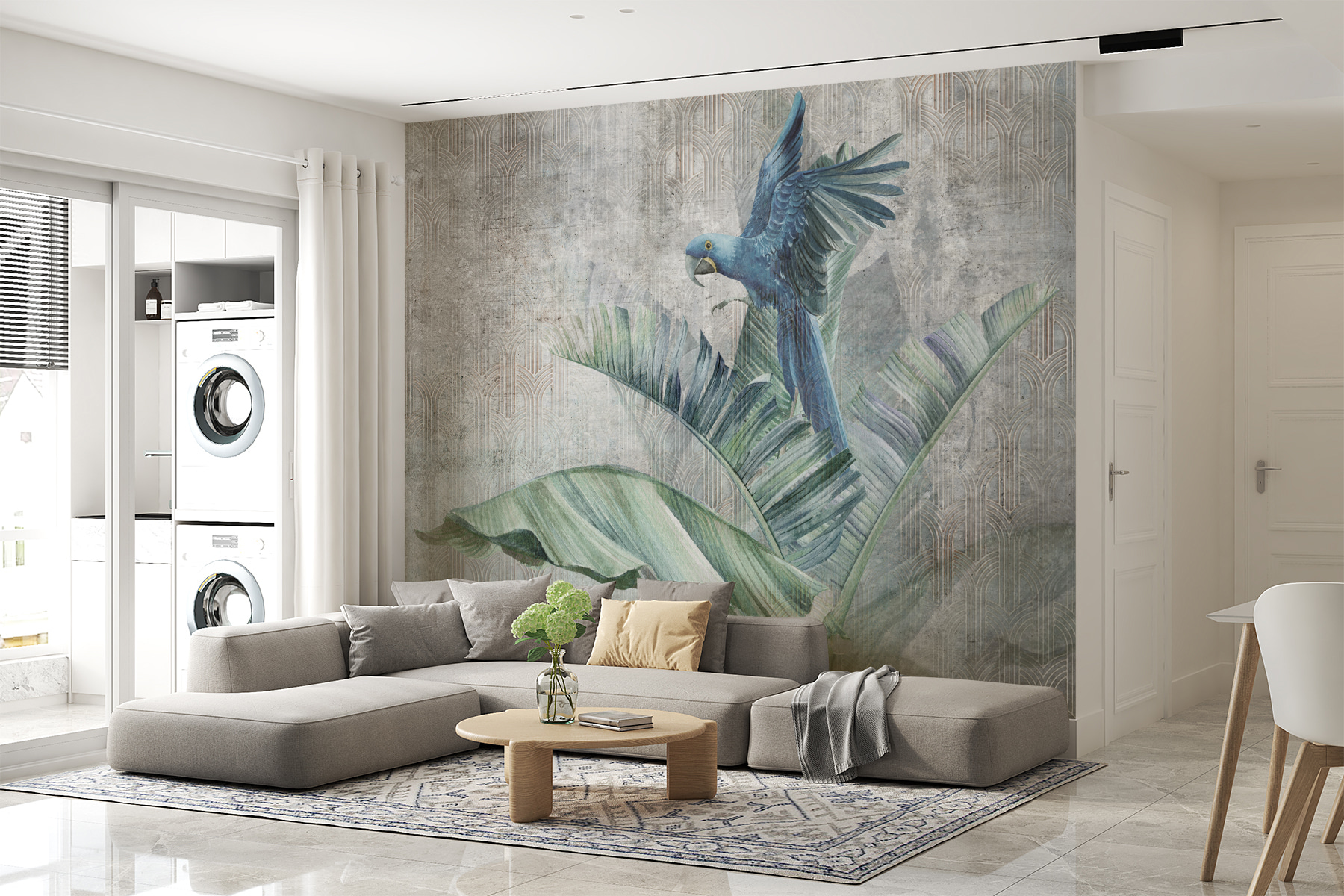 Transform your space into a tropical paradise with this striking wall mural featuring a blue parrot perched on a leafy branch. It brings a touch of nature indoors, perfect for creating a vibrant focal point. Imagine sipping your morning coffee, gazing at this lively scene—it’s like a little vacation every day. The gentle hues and intricate details invite calmness, while the parrot’s playful spirit adds a dash of fun. Whether it’s the living room, a cozy reading nook, or a dynamic office space, this mural whispers “adventure” and “comfort.” Each glance transports you to a lush escape—who wouldn’t want that?