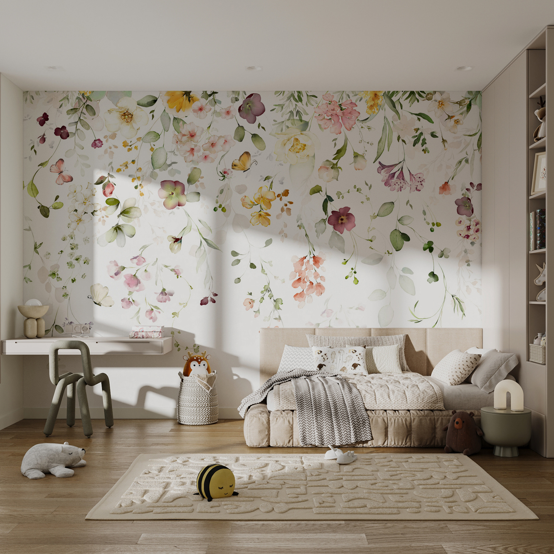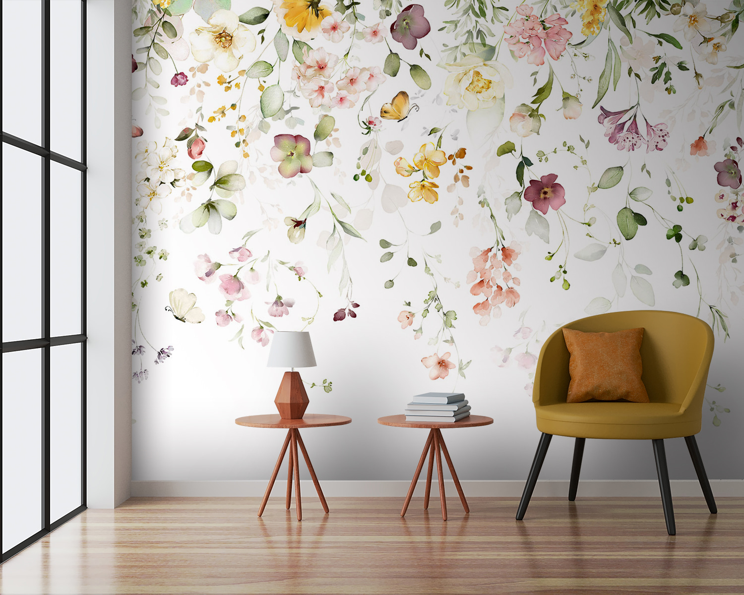 Transform your space into a serene garden with this stunning mural featuring delicate watercolor flowers. Imagine waking up to a burst of soft blooms that feel like a gentle hug. This design brings a touch of nature indoors, wrapping your walls in a cascade of colors that dance across the surface. Picture yourself sipping your morning coffee, surrounded by floating petals and leafy tendrils, feeling instantly uplifted. It’s more than just wall art—it’s a vibe. Perfect for a cozy nook or a dreamy bedroom, this mural will whisper elegance into your everyday life. Who wouldn’t want that?