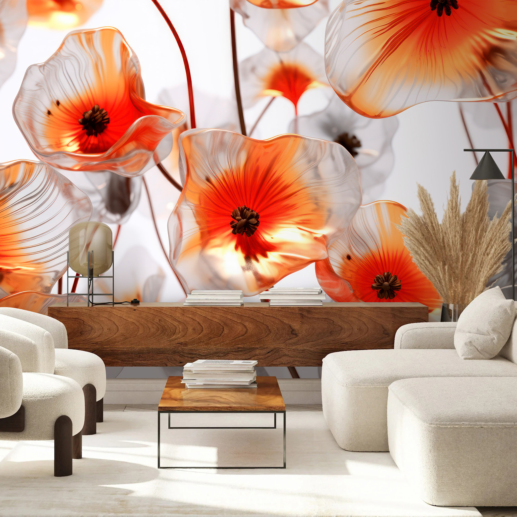 Transform your space with the enchanting “Translucent Blooms” mural. These vibrant orange-center flowers dance across the wall, bringing a lively touch of nature indoors. Imagine waking up to this cheerful floral display—it’s like having a garden without the watering can! Perfect for brightening up a cozy living room or adding a splash of color to a serene bedroom. The translucent petals almost seem to glow, creating a warm, inviting vibe that’s simply irresistible. It’s not just decor; it’s a daily mood booster. Who wouldn’t smile walking past this cheerful bloom exhibit?