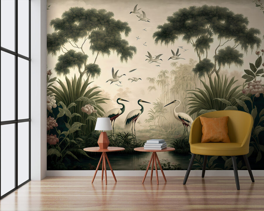 Transform your space with the enchanting “Bird Flying in the Sky” mural. Imagine stepping into your room and feeling like you’ve wandered into a serene natural paradise. The gentle hues and graceful birds create a calm vibe, perfect for unwinding after a long day. Picture a cozy corner where you sip your morning coffee, surrounded by lush greenery and the promise of adventure. It’s like having a quiet forest retreat right on your wall! Friends will admire it, and you might even feel inspired to add a few plants or a cute little fountain. Who doesn’t love a bit of nature indoors?