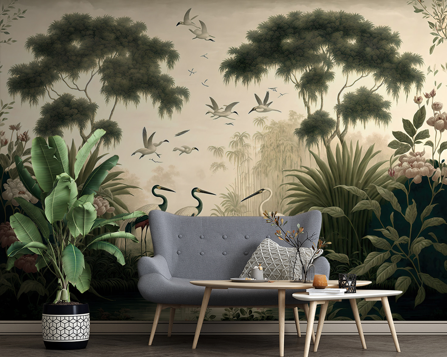 Transform your space with the enchanting “Bird Flying in the Sky” mural. Imagine stepping into your room and feeling like you’ve wandered into a serene natural paradise. The gentle hues and graceful birds create a calm vibe, perfect for unwinding after a long day. Picture a cozy corner where you sip your morning coffee, surrounded by lush greenery and the promise of adventure. It’s like having a quiet forest retreat right on your wall! Friends will admire it, and you might even feel inspired to add a few plants or a cute little fountain. Who doesn’t love a bit of nature indoors?