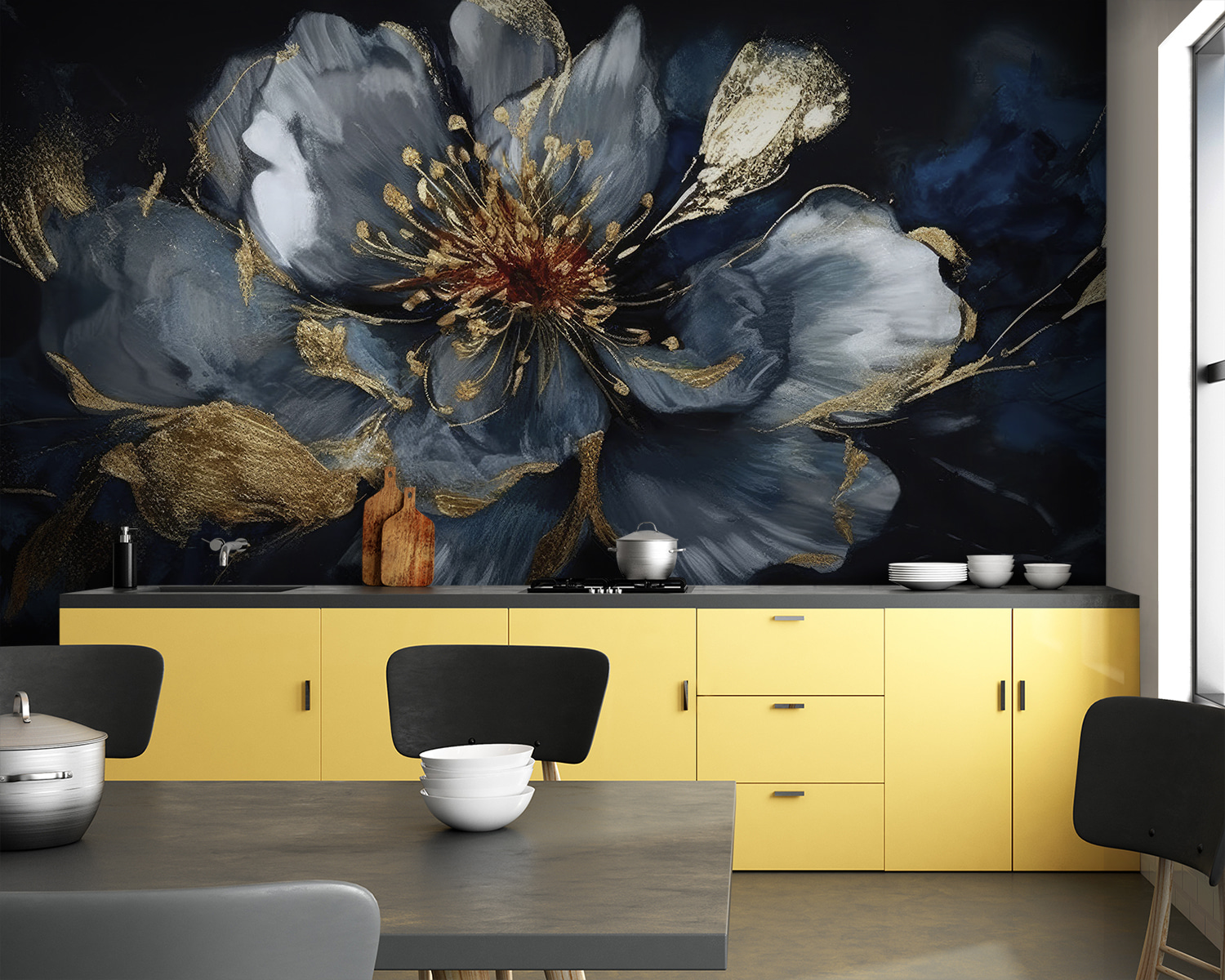 Transform your space with this stunning wall mural, “Elegant Floral Abstract in Dark Tones.” Imagine stepping into a room where graceful blooms dance against a moody backdrop, their rich, dark hues kissed by delicate gold accents. It’s like having a piece of modern art that changes the vibe completely. Perfect for cozy nights or lively gatherings, this mural invites warmth and a bit of magic. Picture friends admiring it over a cup of coffee—there’s just something about it that makes conversations flow. Let this piece wrap your walls in elegance and charm, creating a sanctuary that feels uniquely you.