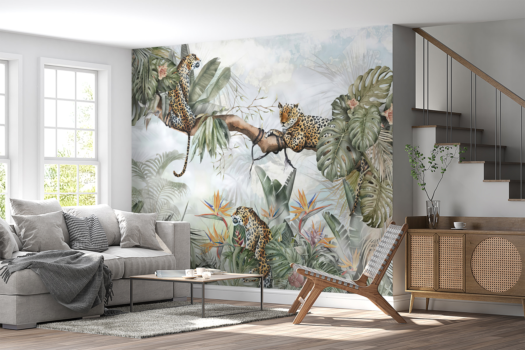 Transform your space with the vibrant charm of this leopard skin mural. Picture this: bold leopards lounging among lush tropical leaves, creating a jungle paradise right in your living room. It’s like an escape to a sunny jungle without the humidity! Kids will love the playful vibe, and it might just spark a few adventures in their imaginations. The soft colors blend seamlessly, almost whispering a calm “relax, you’ve arrived.” Ideal for curious little ones or anyone wanting to add a splash of wild elegance to their walls, this mural brings a touch of nature’s beauty indoors.