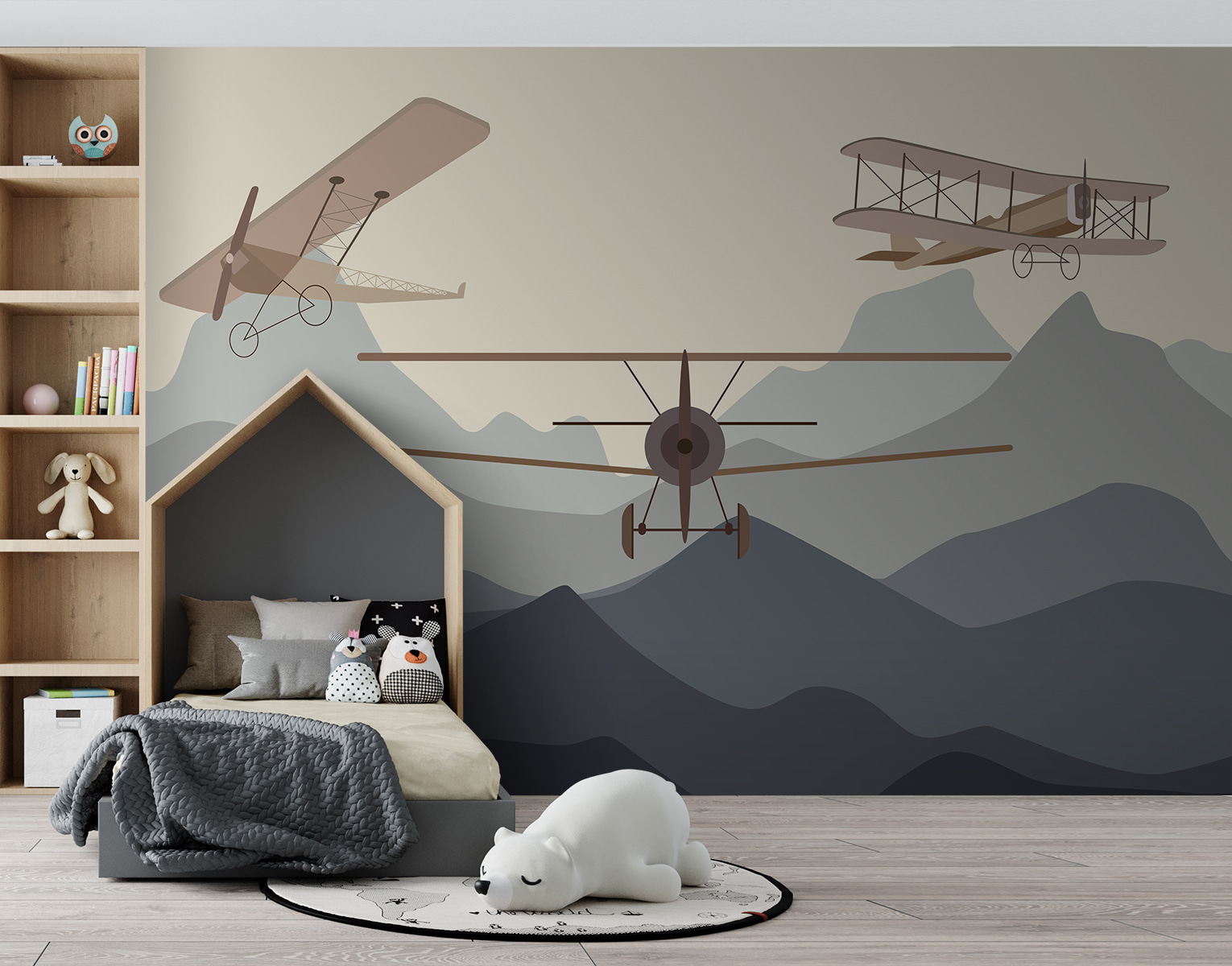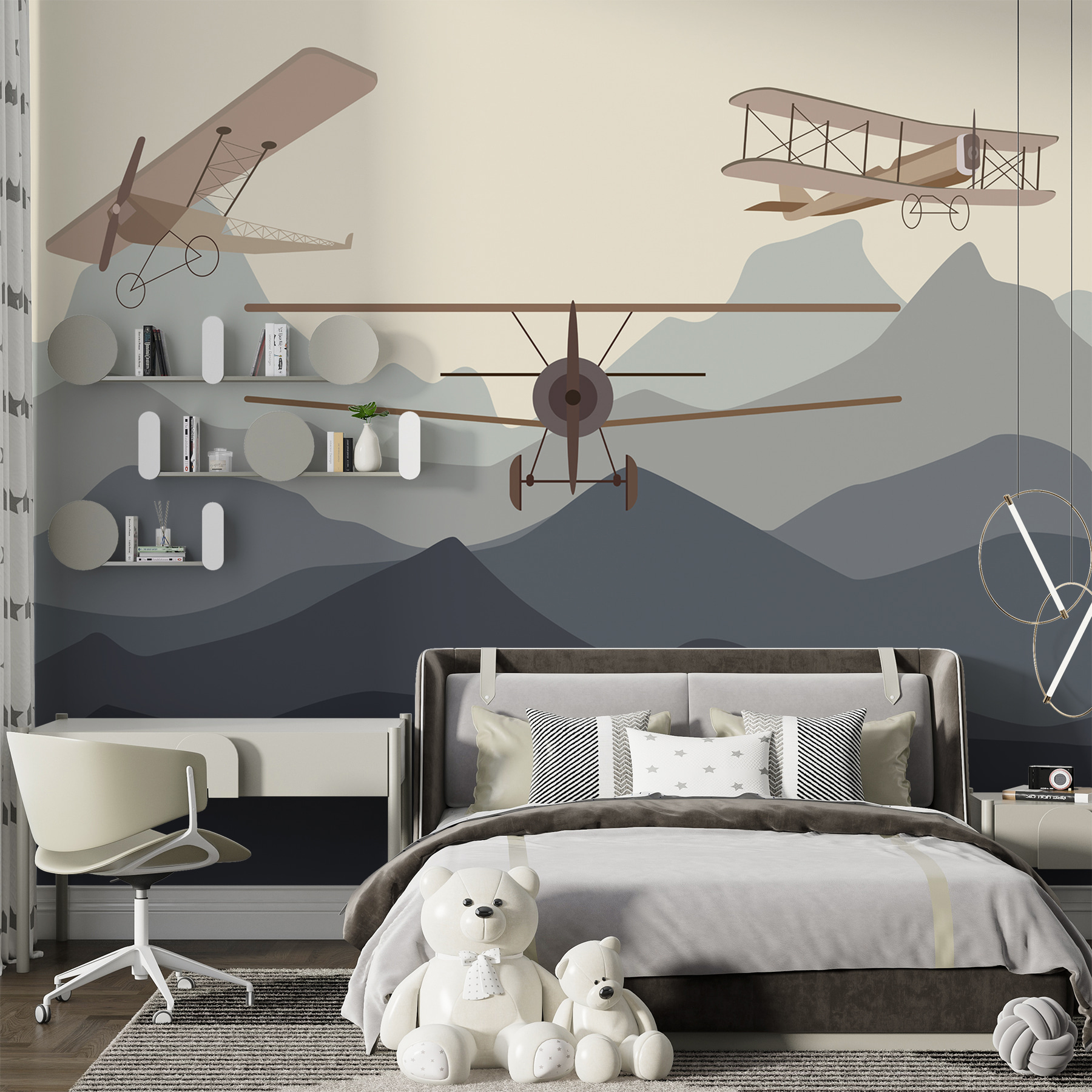 Elevate your space with this charming mural of vintage airplanes gliding through the sky. It’s like having a mini aviation museum right on your wall—how cool is that? The soft colors blend perfectly with any decor, bringing a serene vibe to your room. Imagine sitting back, coffee in hand, gazing at those planes soaring over mountains. Perfect for sparking creativity or just daydreaming about adventures! This mural has a playful charm that whispers stories of flight, perfect for a cozy den or even a kid’s room. So why not let your walls take to the skies?