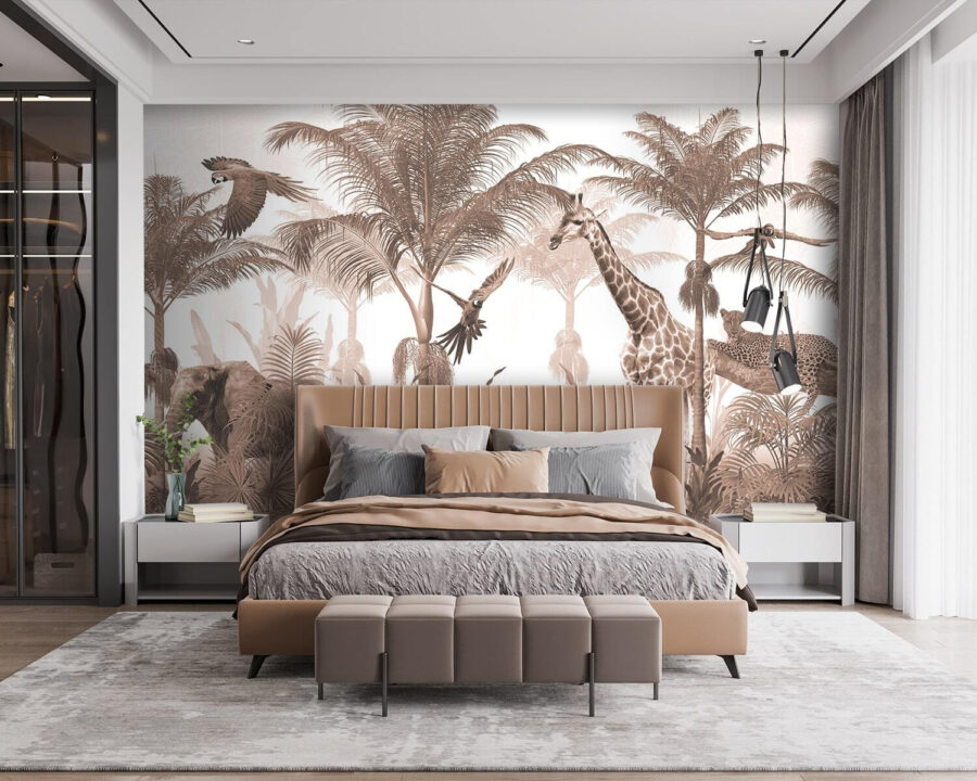 Transform any room into a whimsical escape with this enchanting mural featuring a giraffe and a bird nestled among lush foliage. Imagine stepping into a vibrant forest, where playful wildlife reigns and adventure is just around the corner. The soft tones create a serene backdrop, perfect for a child’s room or a cozy reading nook. Kids will love pointing out the animals, and who knows, it might inspire a few wild stories during bedtime. This mural can spark imagination, turning walls into windows of wonder. Embrace the beauty of nature right at home, and watch every day feel a little more magical.