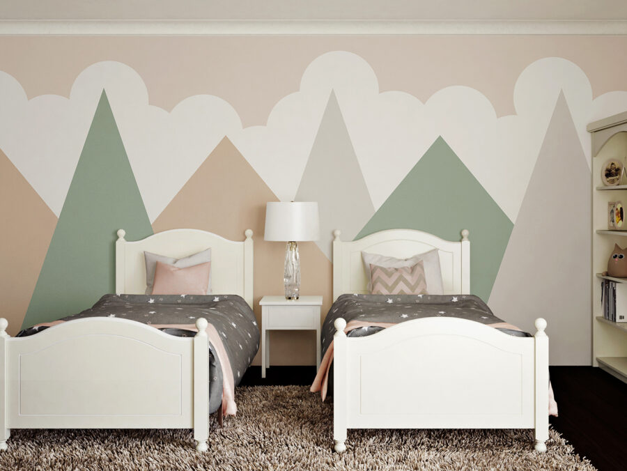 Transform your space with this vibrant mural featuring colorful triangle shapes against a crisp white backdrop. Imagine walking into a room that feels like a breath of fresh air, where every glance brings a pop of playfulness. The mix of colors feels modern yet cozy—not too loud, just the right amount of fun.