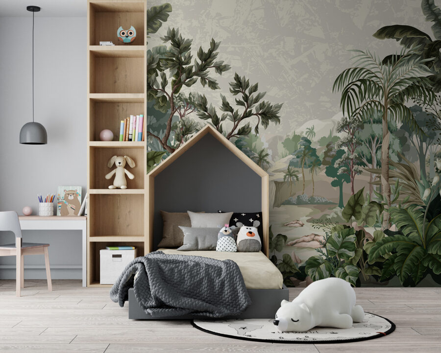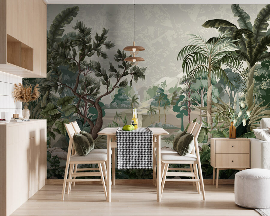 Step into a serene escape with the “Lush Tropical Jungle Scene.” This stunning mural brings the jungle right into your home, complete with a captivating waterfall that almost makes you want to pack your bags for a rainforest retreat. Just imagine sipping your morning coffee while surrounded by vibrant greens and the sounds of nature. It’s like having an eternal vacation nook! Perfect for brightening up any room, this mural invites a splash of adventure and tranquility. The lush detail can spark daydreams of exotic travels or cozy evenings lost in a good book. Let nature’s beauty dance across your walls!
