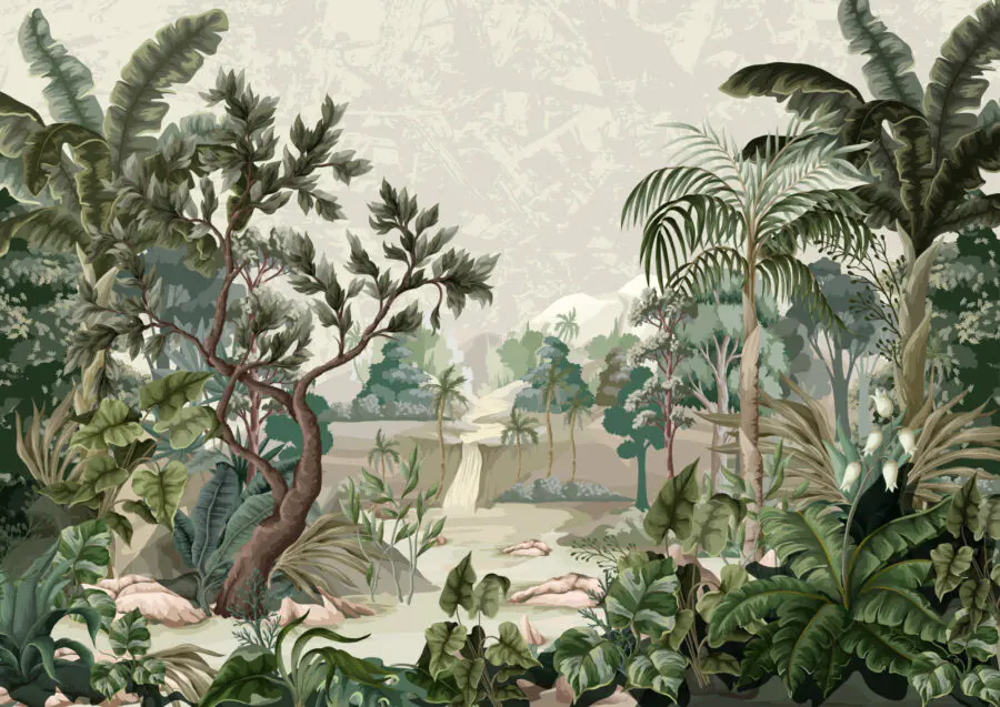 Step into a serene escape with the “Lush Tropical Jungle Scene.” This stunning mural brings the jungle right into your home, complete with a captivating waterfall that almost makes you want to pack your bags for a rainforest retreat. Just imagine sipping your morning coffee while surrounded by vibrant greens and the sounds of nature. It’s like having an eternal vacation nook! Perfect for brightening up any room, this mural invites a splash of adventure and tranquility. The lush detail can spark daydreams of exotic travels or cozy evenings lost in a good book. Let nature’s beauty dance across your walls!