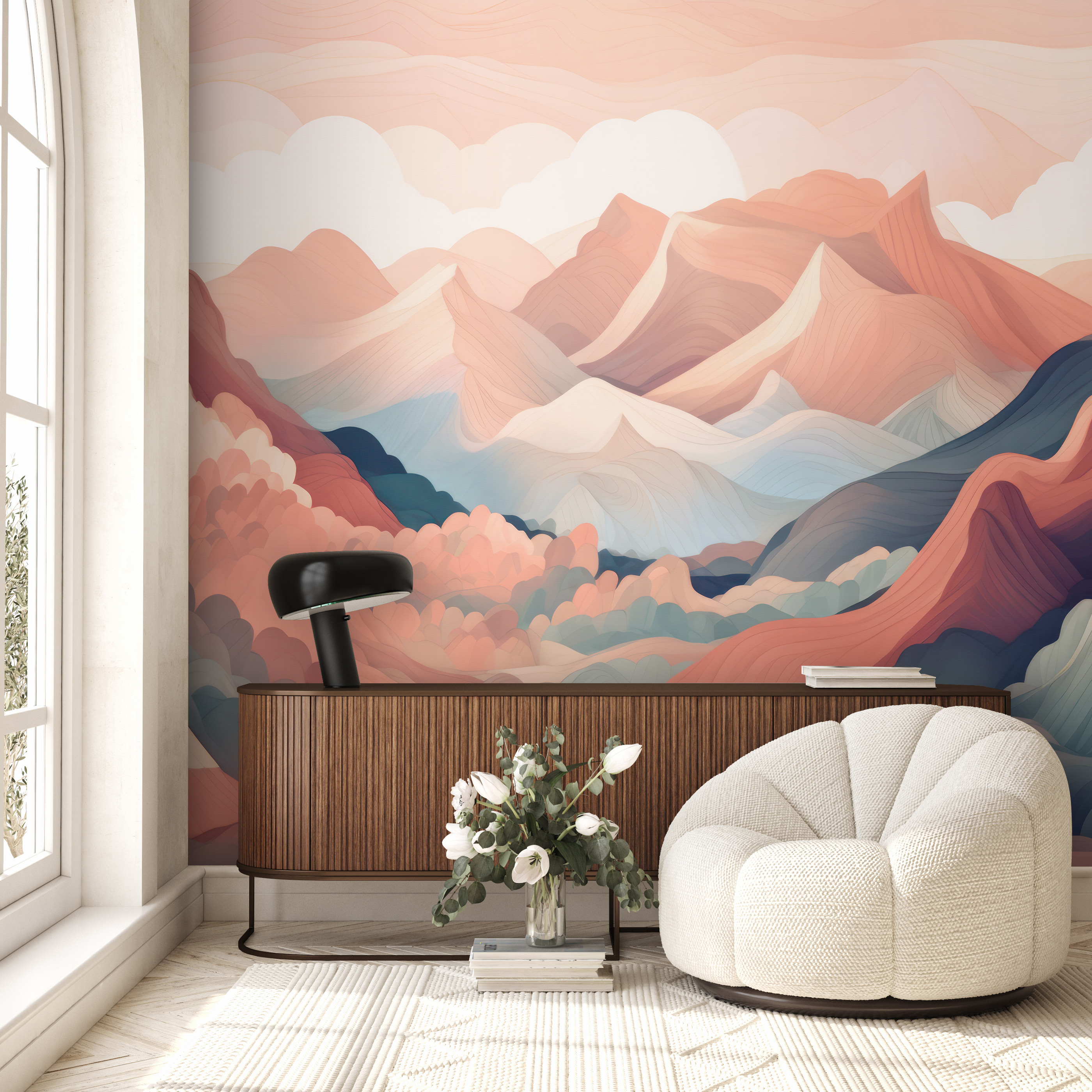 Transform your space into a serene retreat with this vibrant mountain landscape mural. It’s like bringing a piece of nature right into your living room—minus the hiking boots and bug spray. The soft, flowing lines and rich colors evoke those dreamy sunset hikes, where the mountains blush under the fading sun. Imagine curling up with a cup of tea, gazing at this beauty, feeling the peaceful vibes wash over you. It’s not just decor; it’s an experience, a moment of calm in a crazy world. Perfect for any room that needs a splash of the outdoors, or just wants to escape it all for a bit! Add a little adventure to those four walls, and watch your space come alive!