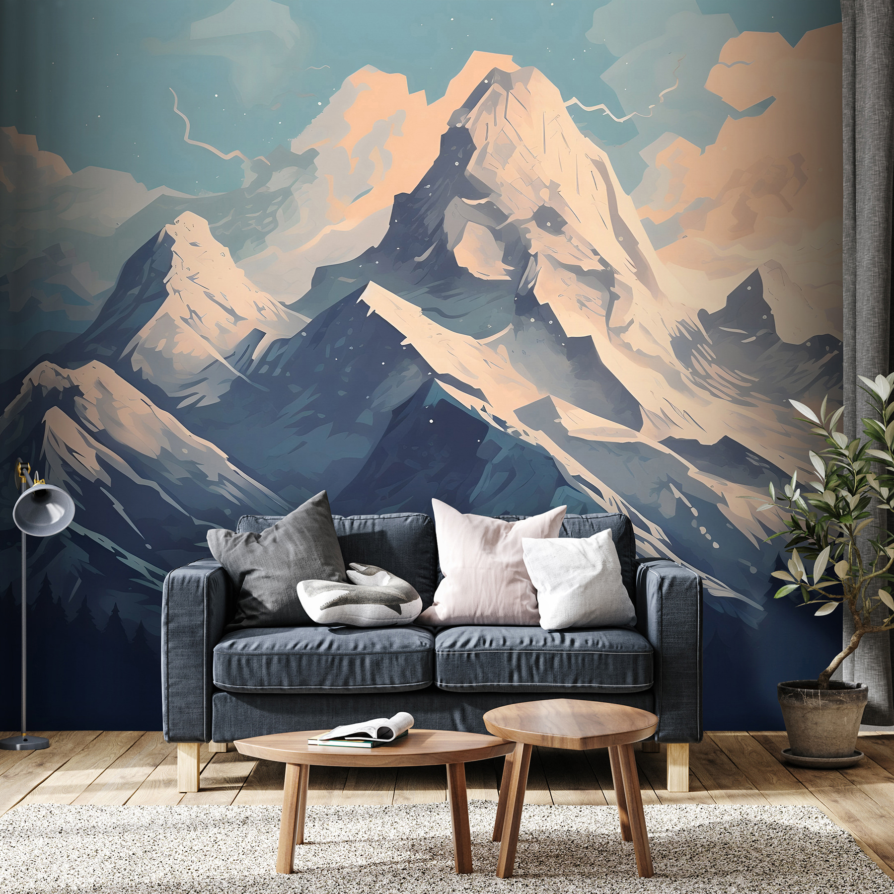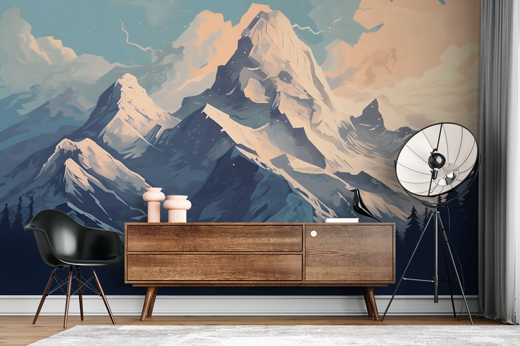 Transform any room into a serene getaway with this stunning wall mural featuring snow-capped mountains kissing the sky. Imagine waking up to this breathtaking scene every day—it’s like bringing a slice of nature indoors. The soft colors and dramatic peaks create a calm vibe, perfect for a cozy reading nook or a tranquil bedroom. Plus, let’s face it, nothing says “I’m sophisticated yet laid-back” like mountain views, right? It’s more than just decor; it’s an invitation to daydream about adventures while sipping coffee at home. Embrace the beauty and let your walls do the talking!