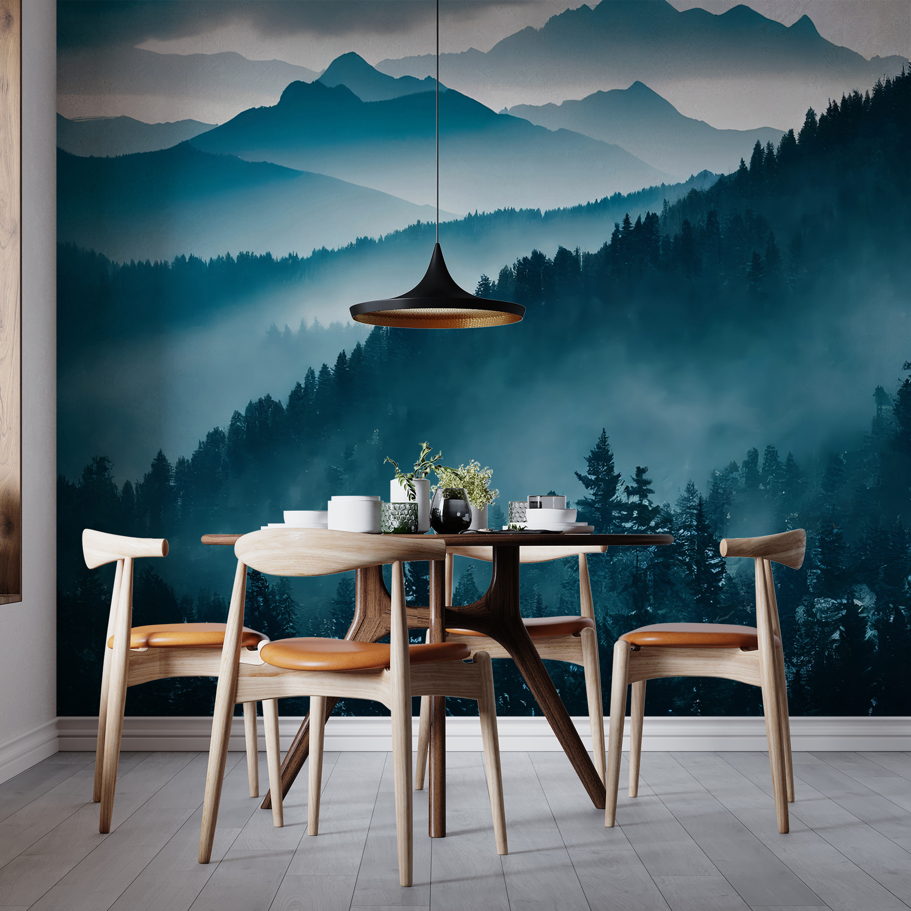 This mural’s calming hues and dreamy landscape can spark conversations, or simply let you daydream about winter adventures. Just picture a hot cup of cocoa in hand as this beautiful scene transforms your room into a tranquil retreat. Perfect for a living room, bedroom, or even an artsy workspace—who wouldn’t love a little winter magic in their everyday life?